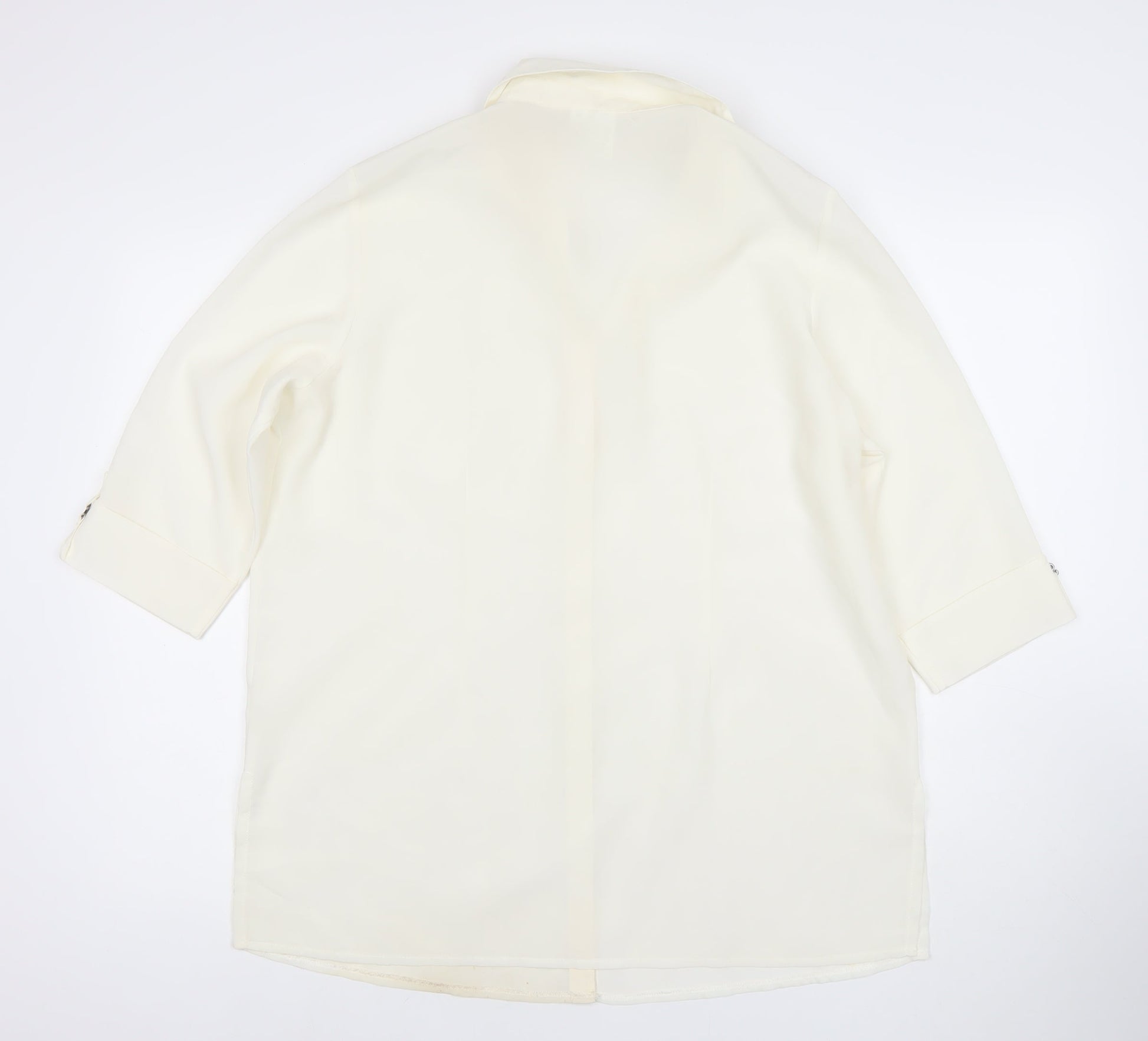 Classics Womens Ivory Button-Up Blouse Size 16 3/4 Sleeve