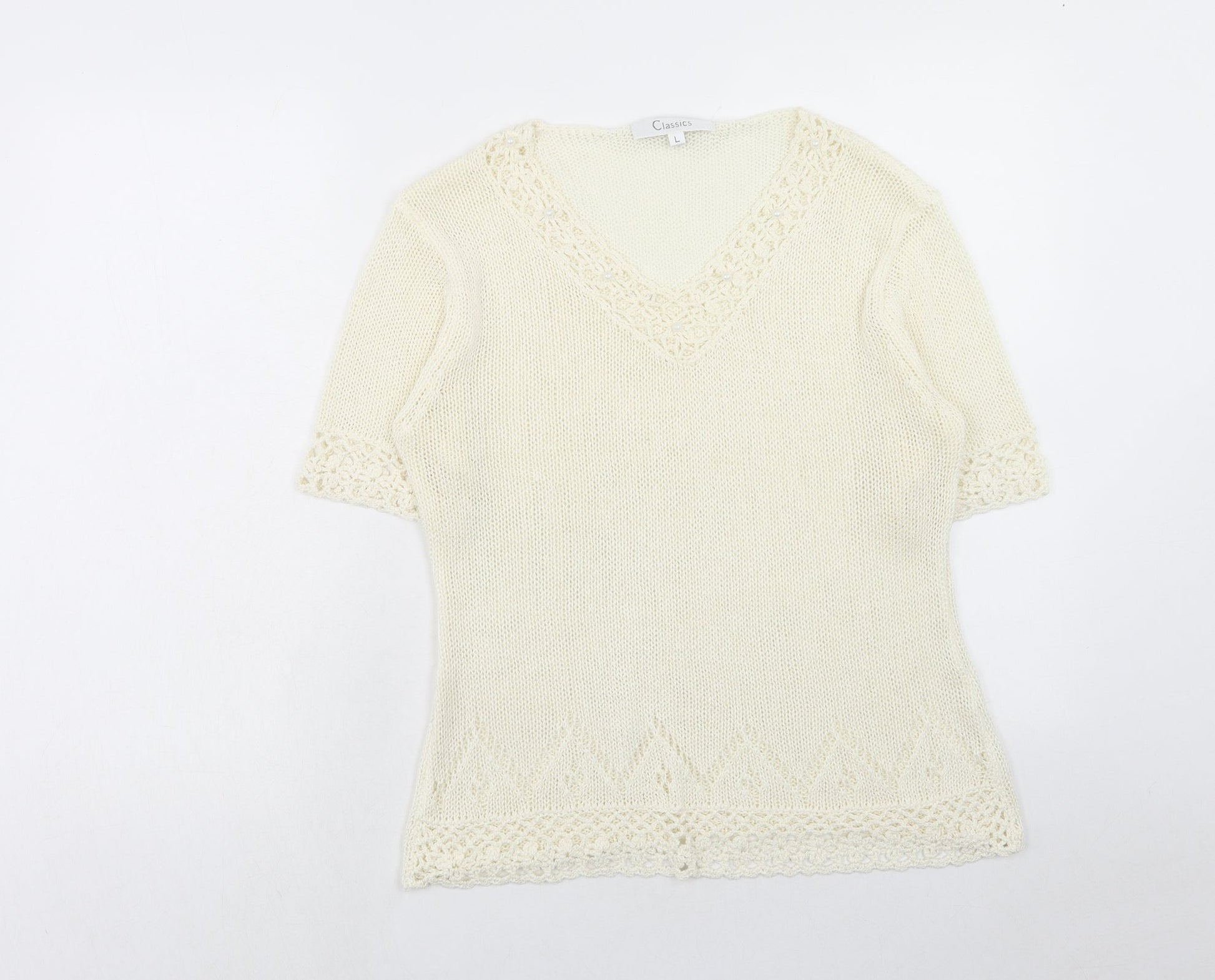 Classics Womens Ivory V-Neck Acrylic Pullover Jumper Size L
