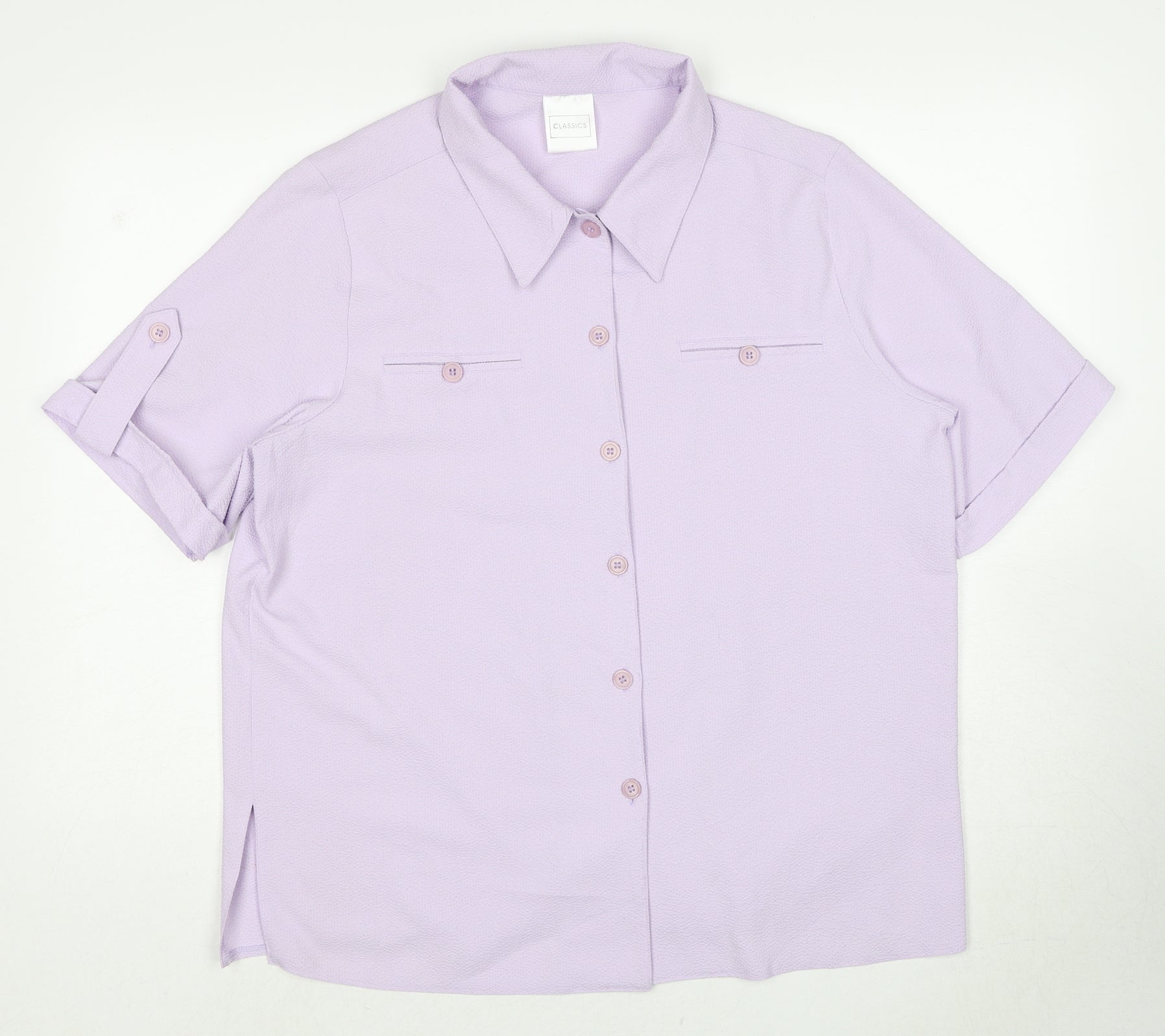 Classics Womens Purple Polyester Basic Button-Up Size 16 Collared