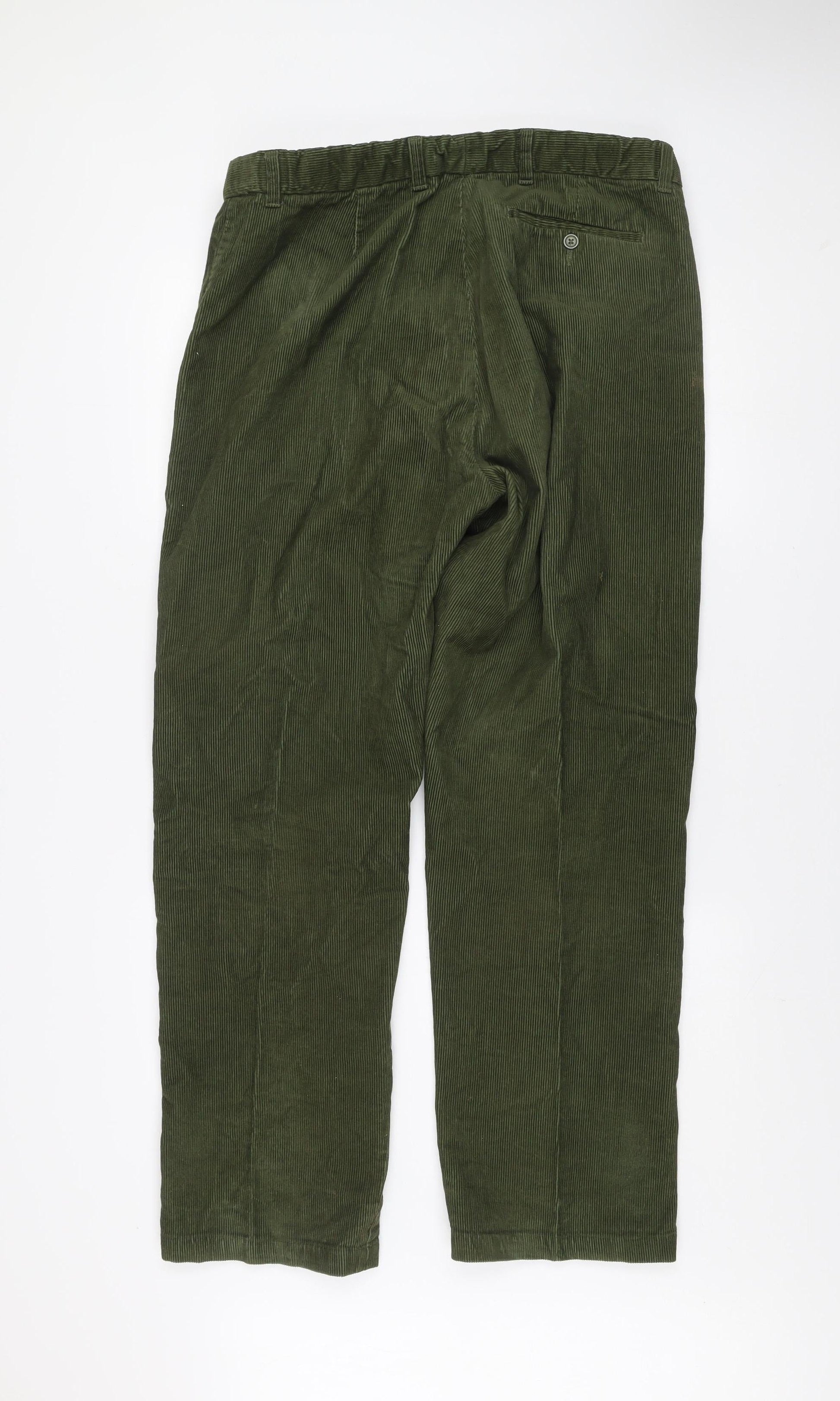 Clifford James Men's Green Corduroy Trousers 38R Classic Fit Cotton