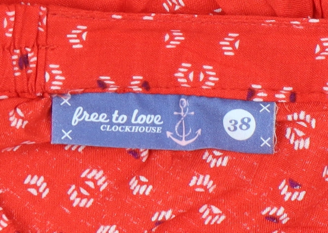Clockhouse Womens Red A-Line Short Skirt Size 10 Viscose Button Detail