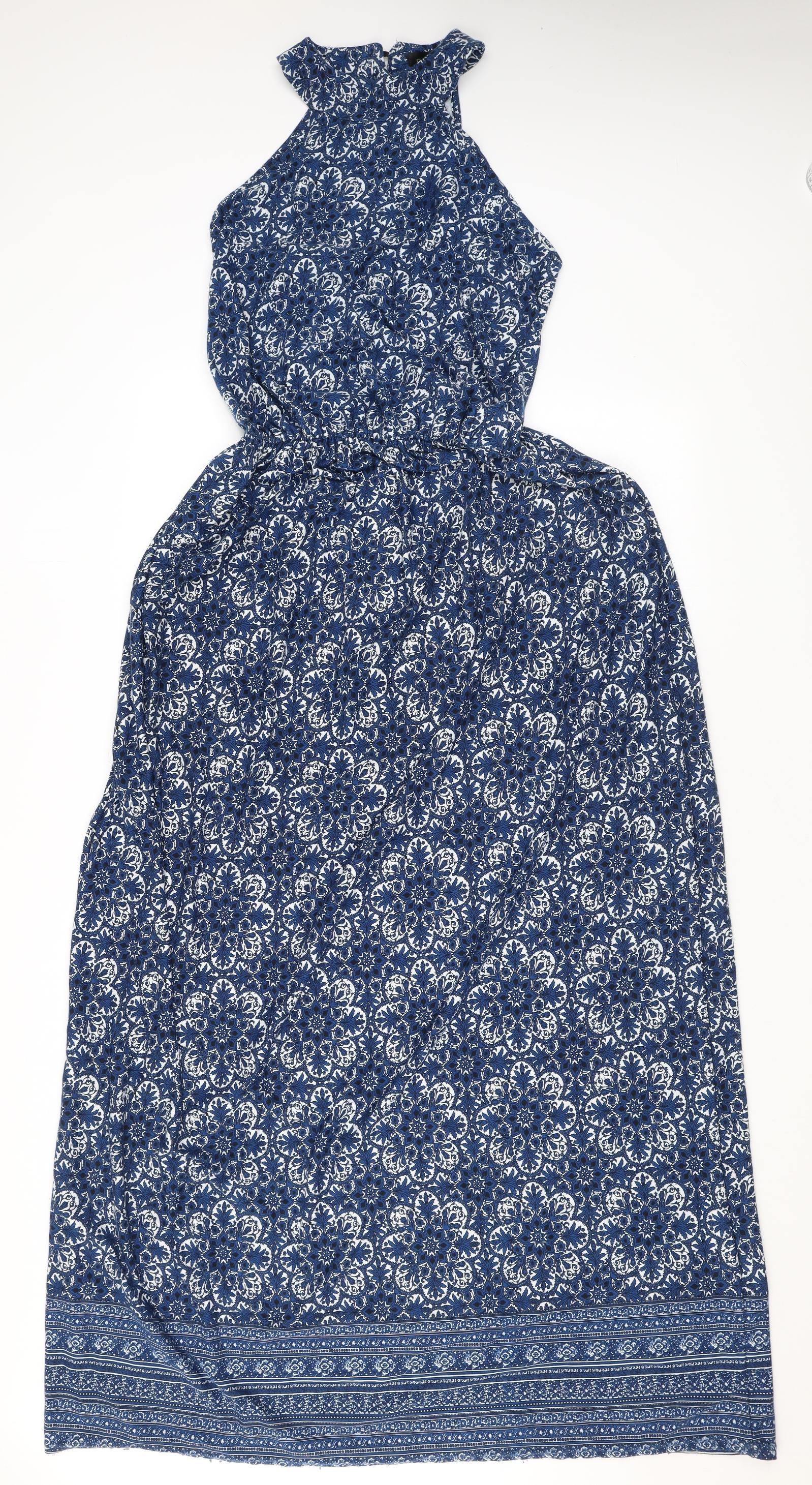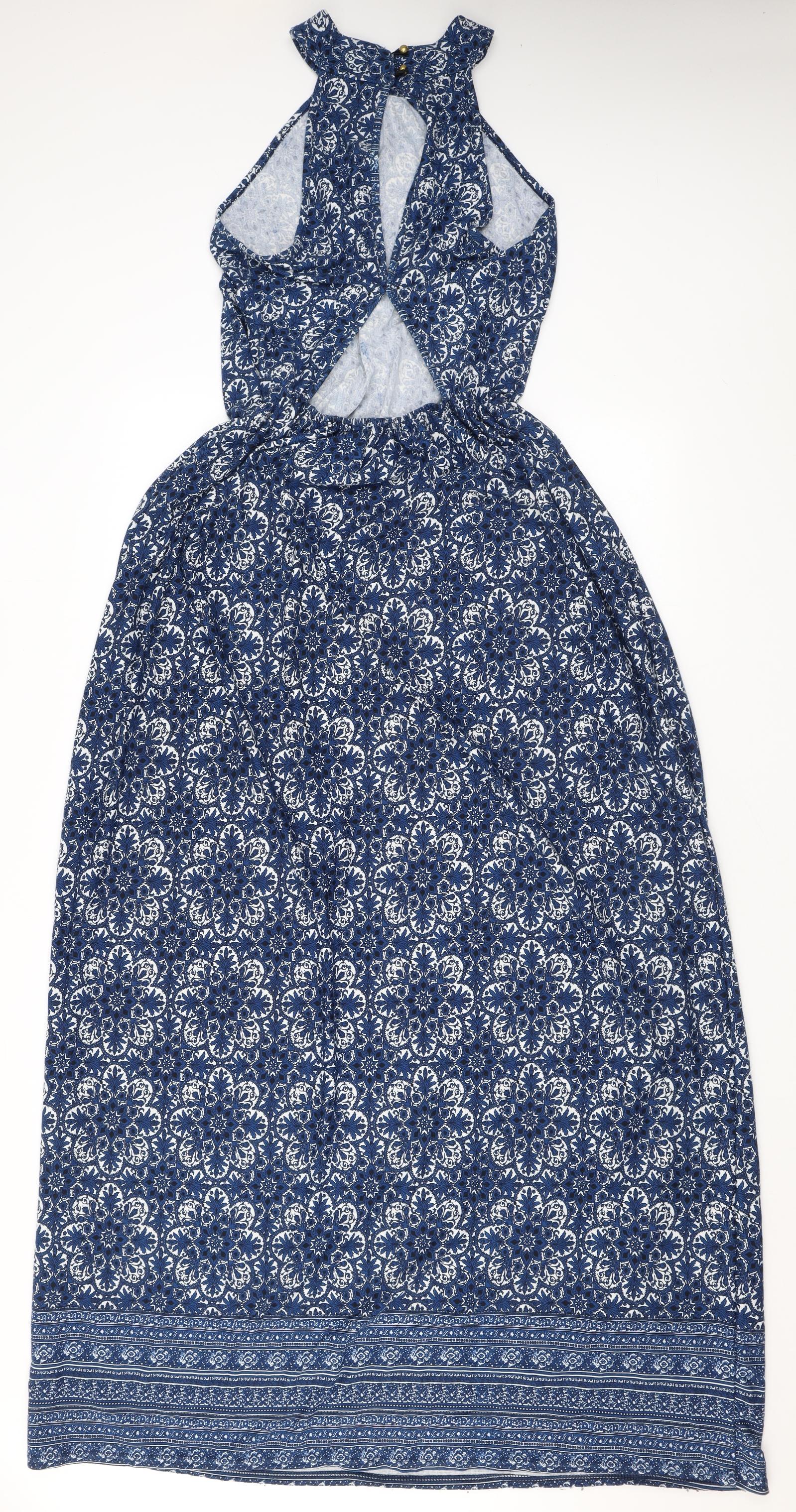 Club L Womens Blue Geometric Viscose Maxi Size 14 Halter Button