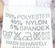 - Material Breakdown: 55% Polyester 40% Nylon 5% Spandex