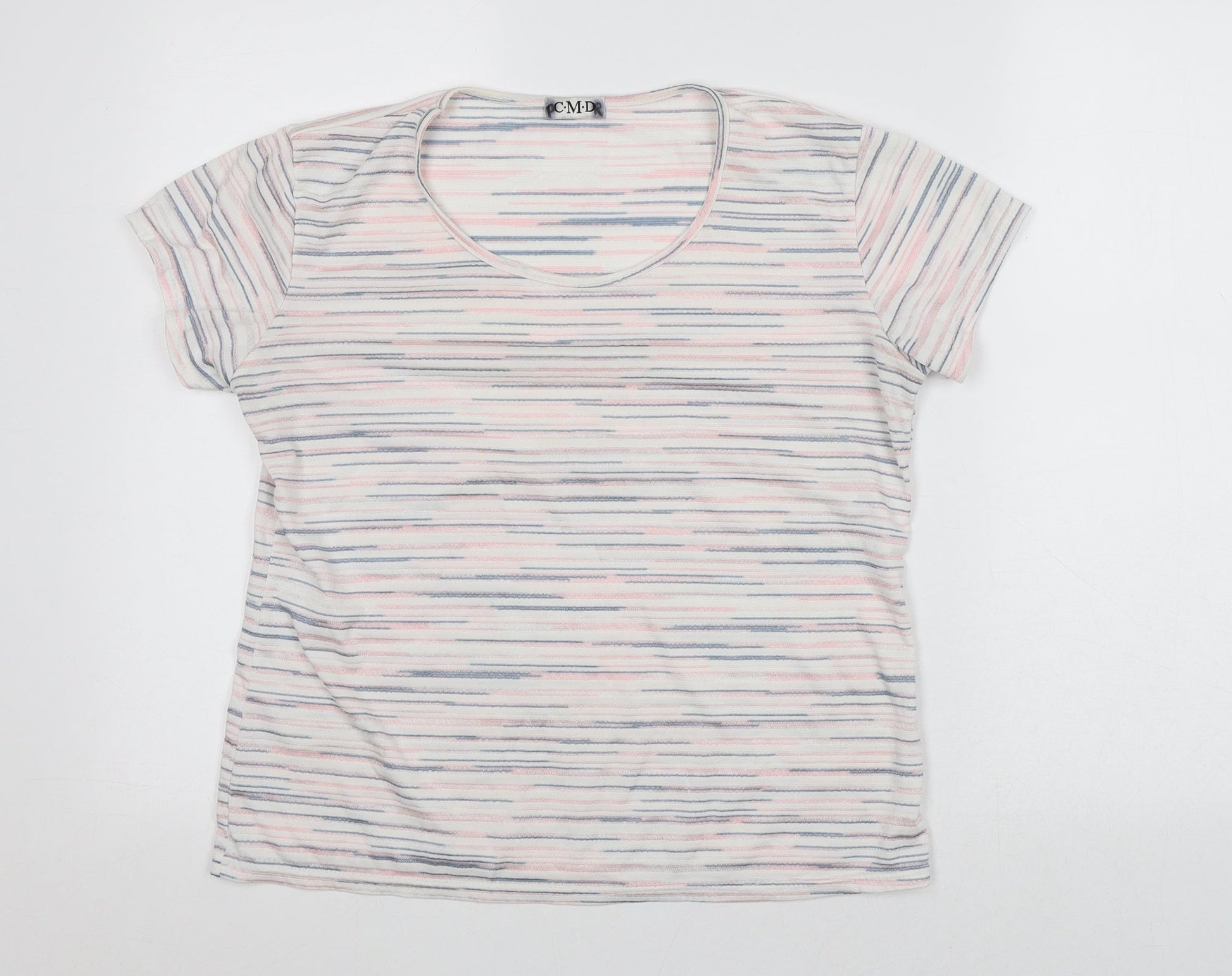 CMD Womens White Striped Nylon Basic T-Shirt Size M Round Neck