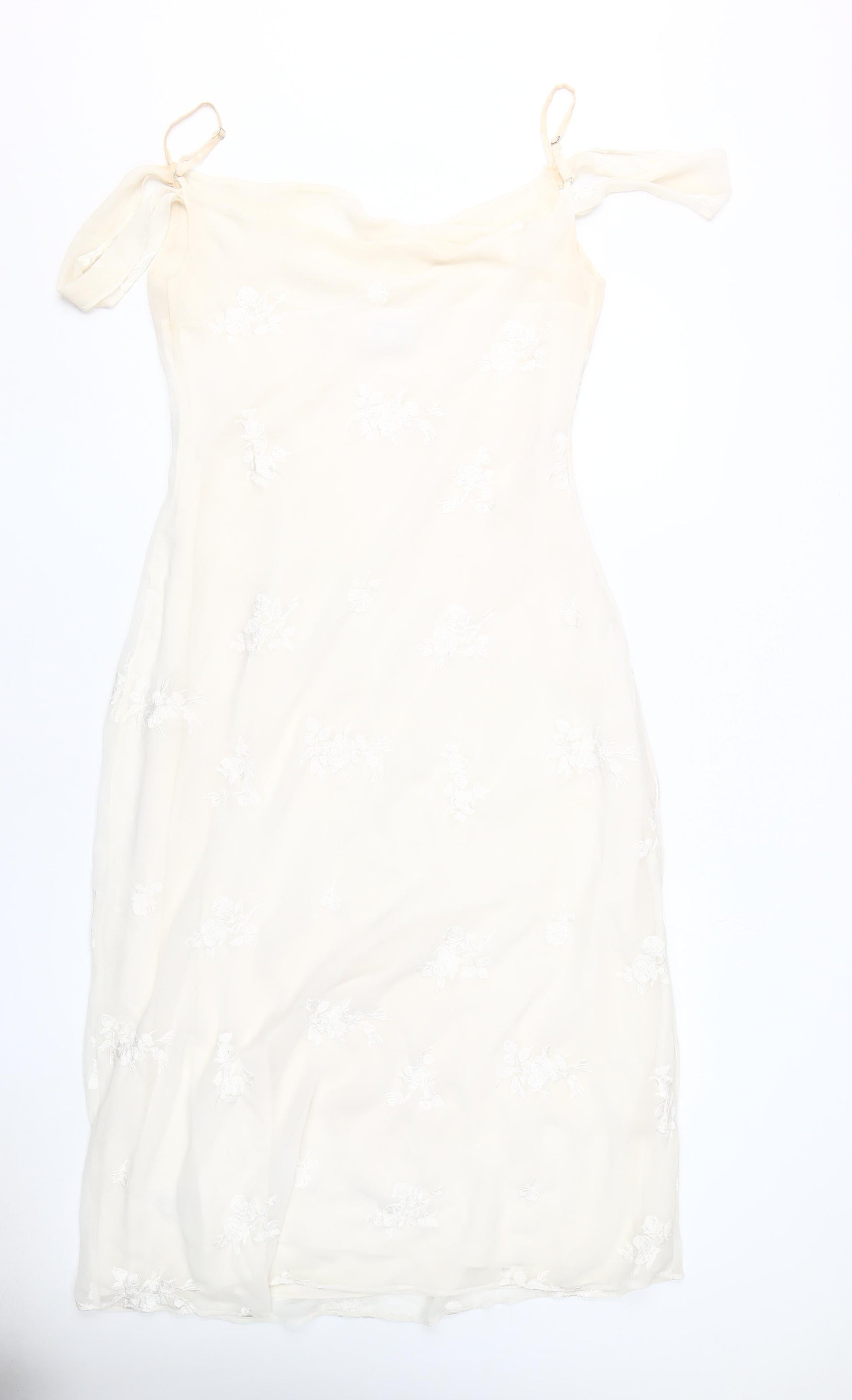 Coast Ivory Slip Dress Women Size 14 Floral Embroidered