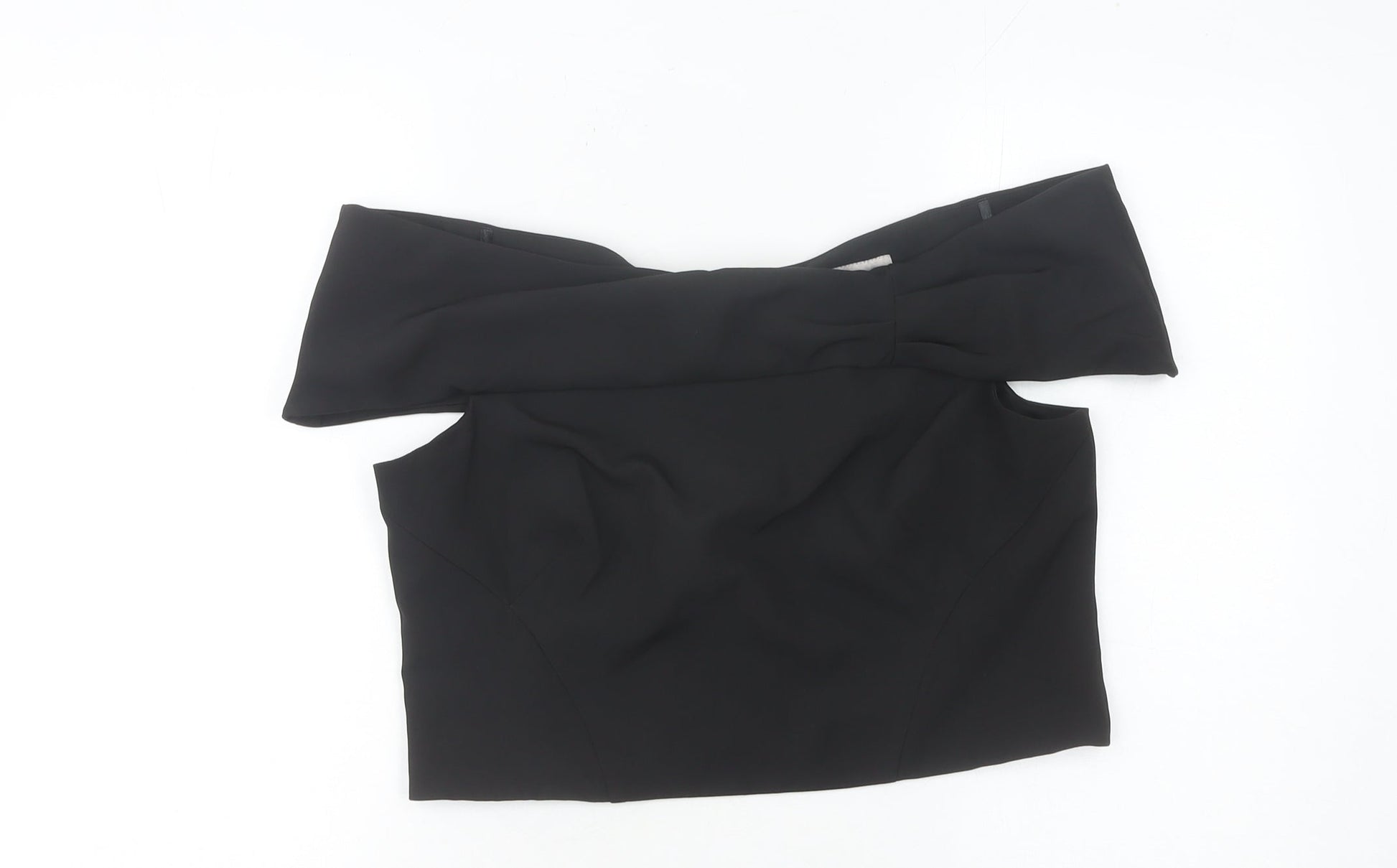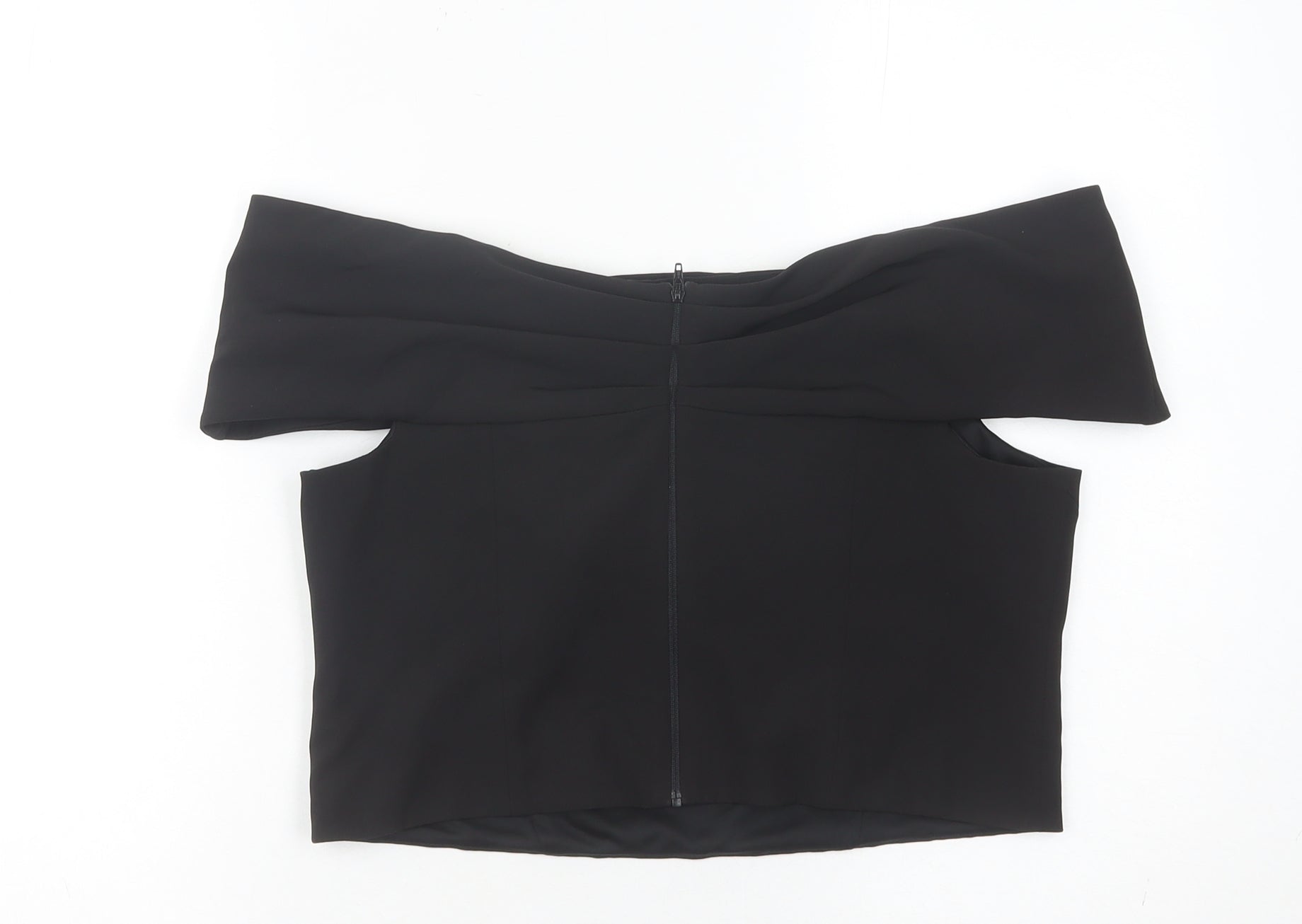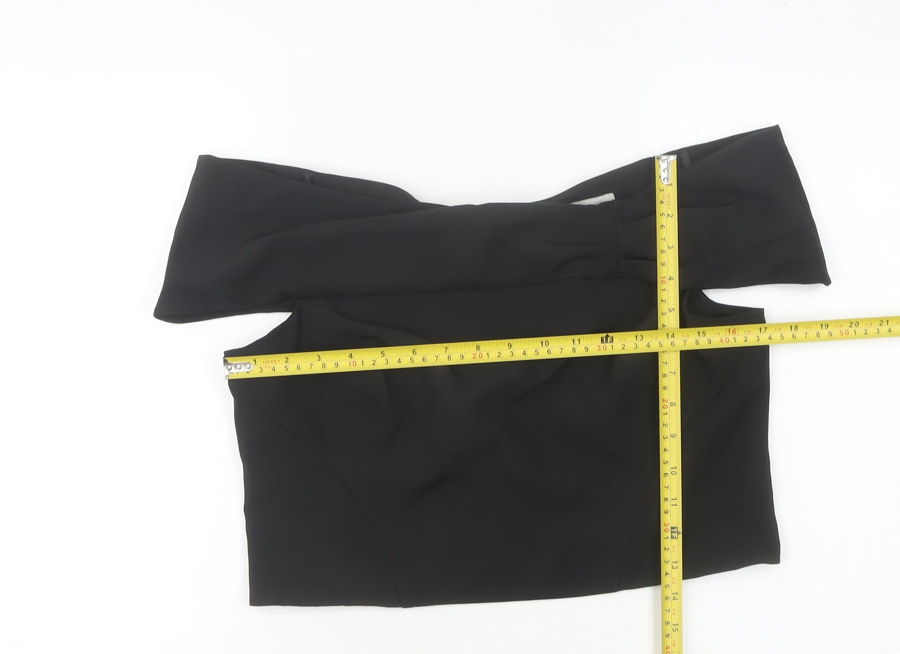 Coast Women’s Black Off-Shoulder Cropped Blouse UK 16 Woven Zip Party Top