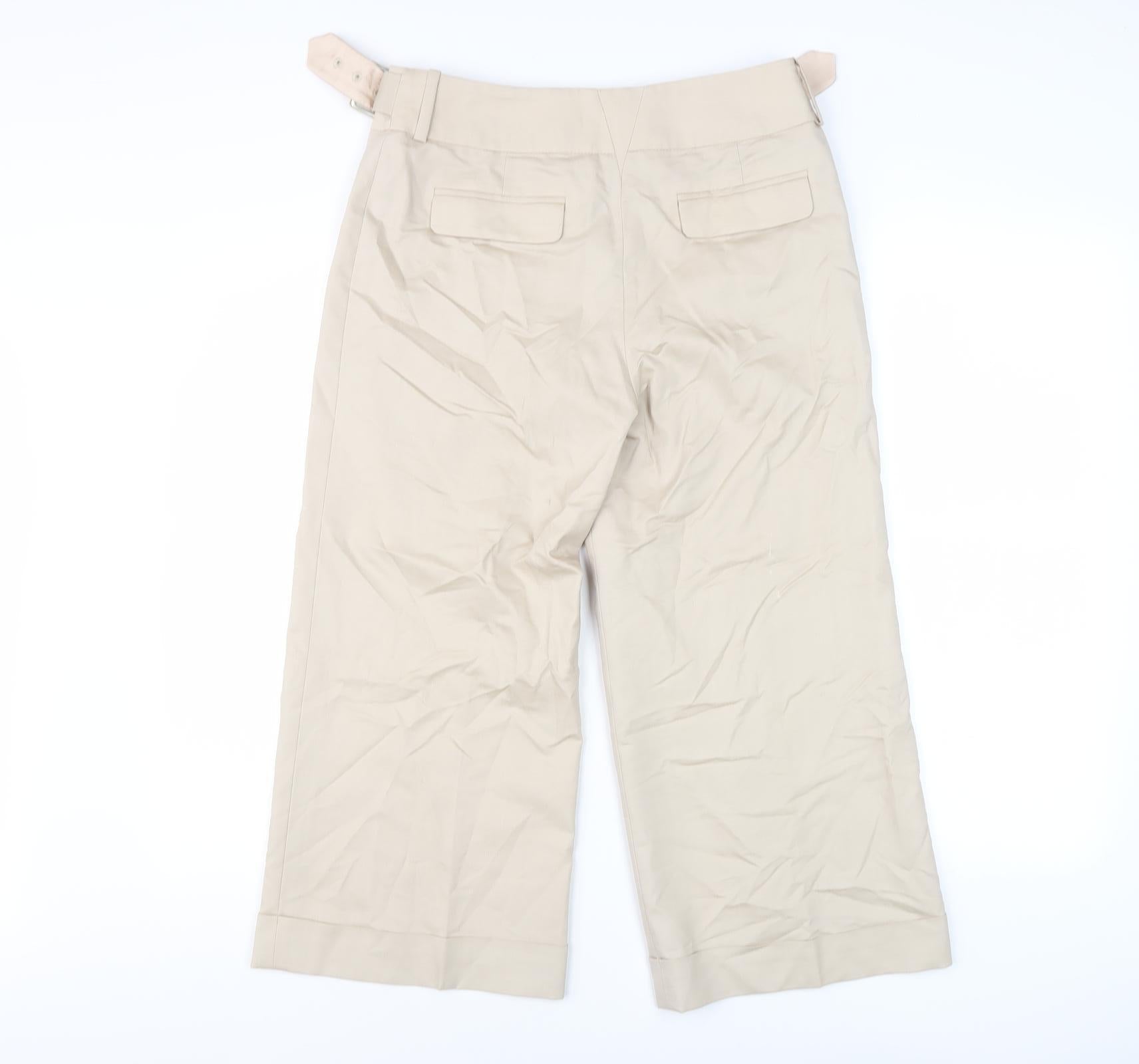 Coast Women's Beige Cropped Trousers, Size 10, Belted Wide-Leg