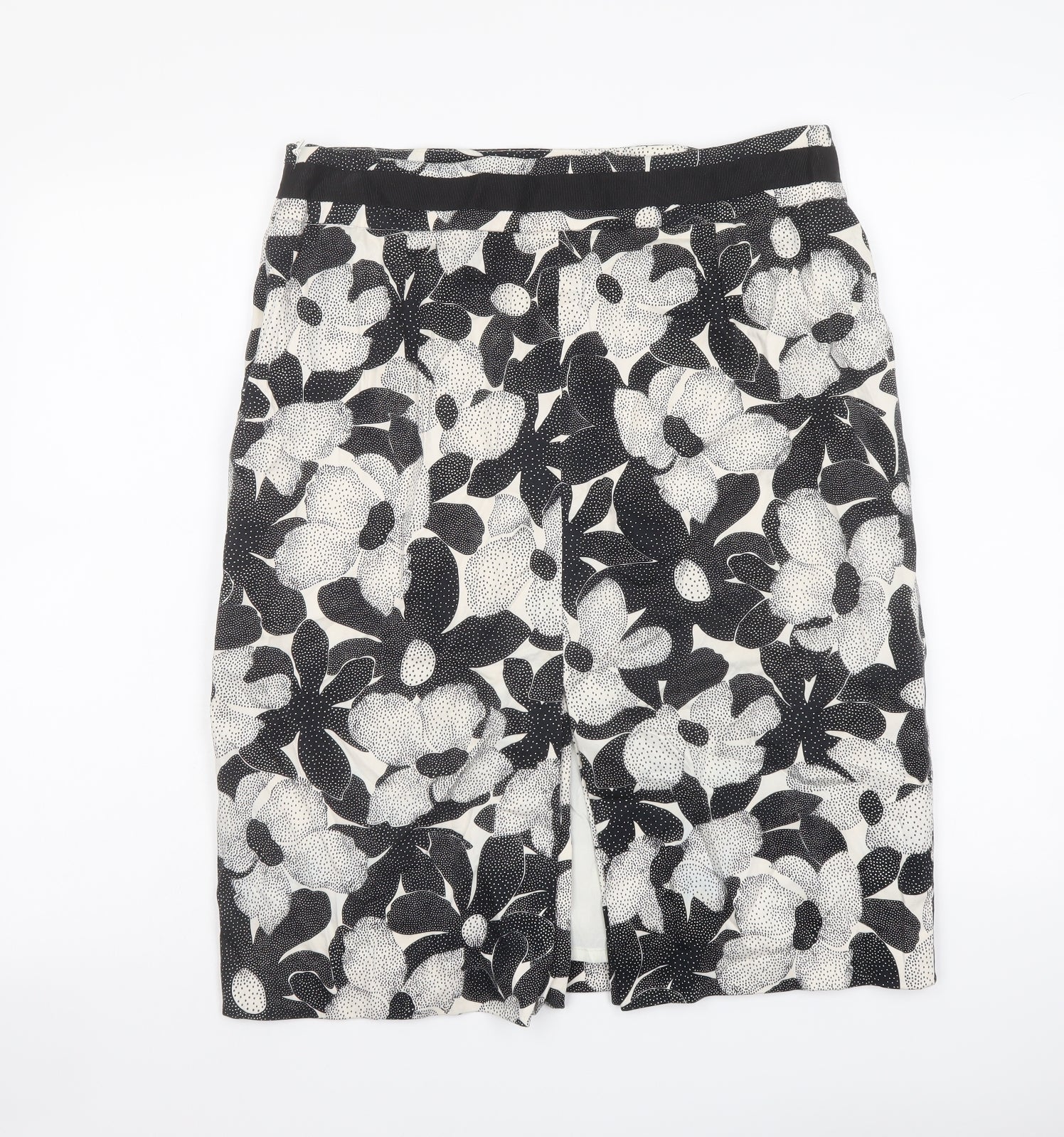 Coast Womens Black Floral Cotton Bandage Skirt Size 14 Zip