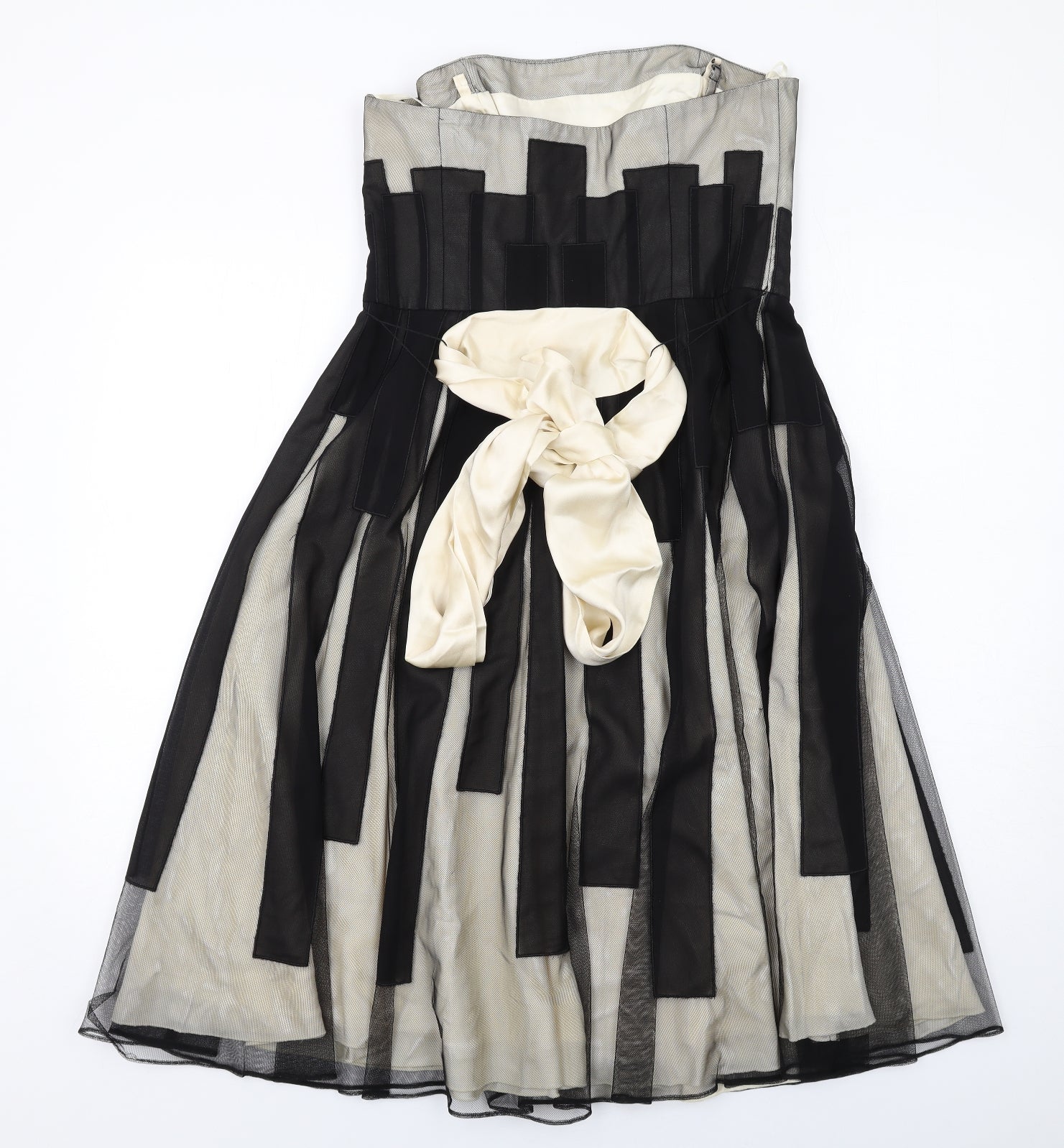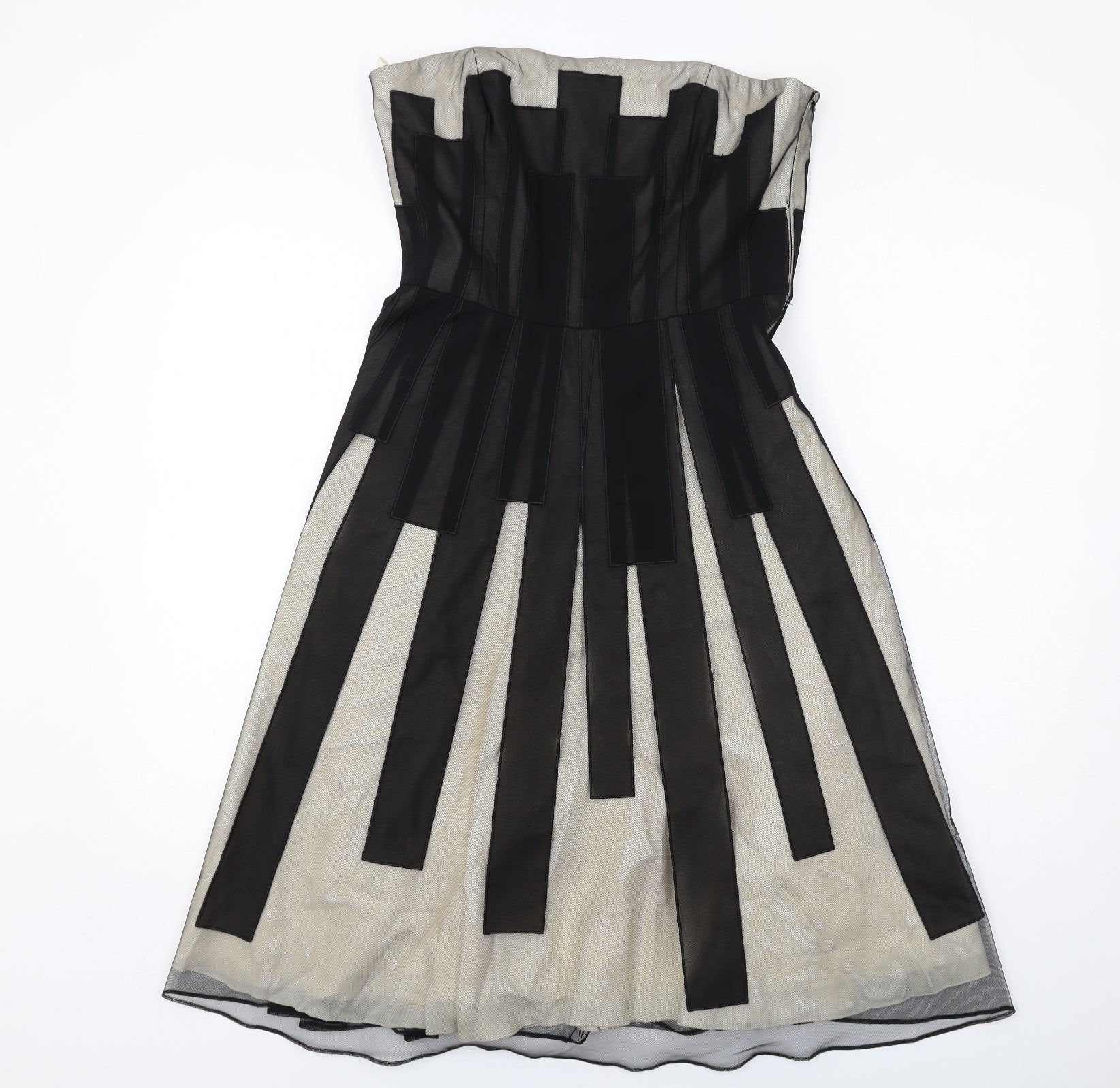 Coast Womens Black Geometric Polyester A-Line Size 12 Off the Shoulder Zip