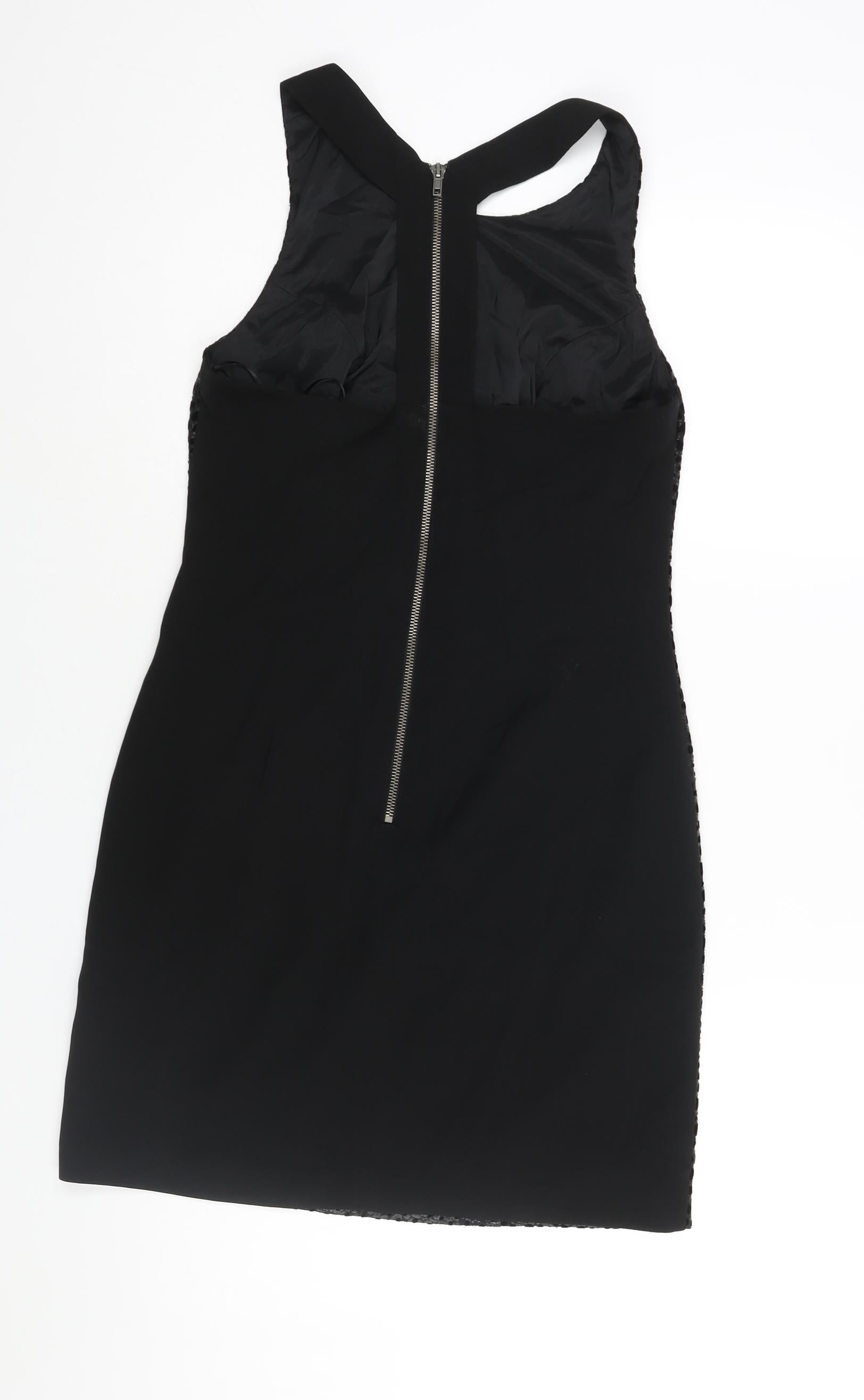 Coast Womens Black Polyester Shift Size 10 Round Neck Zip - Velour Geometric Print