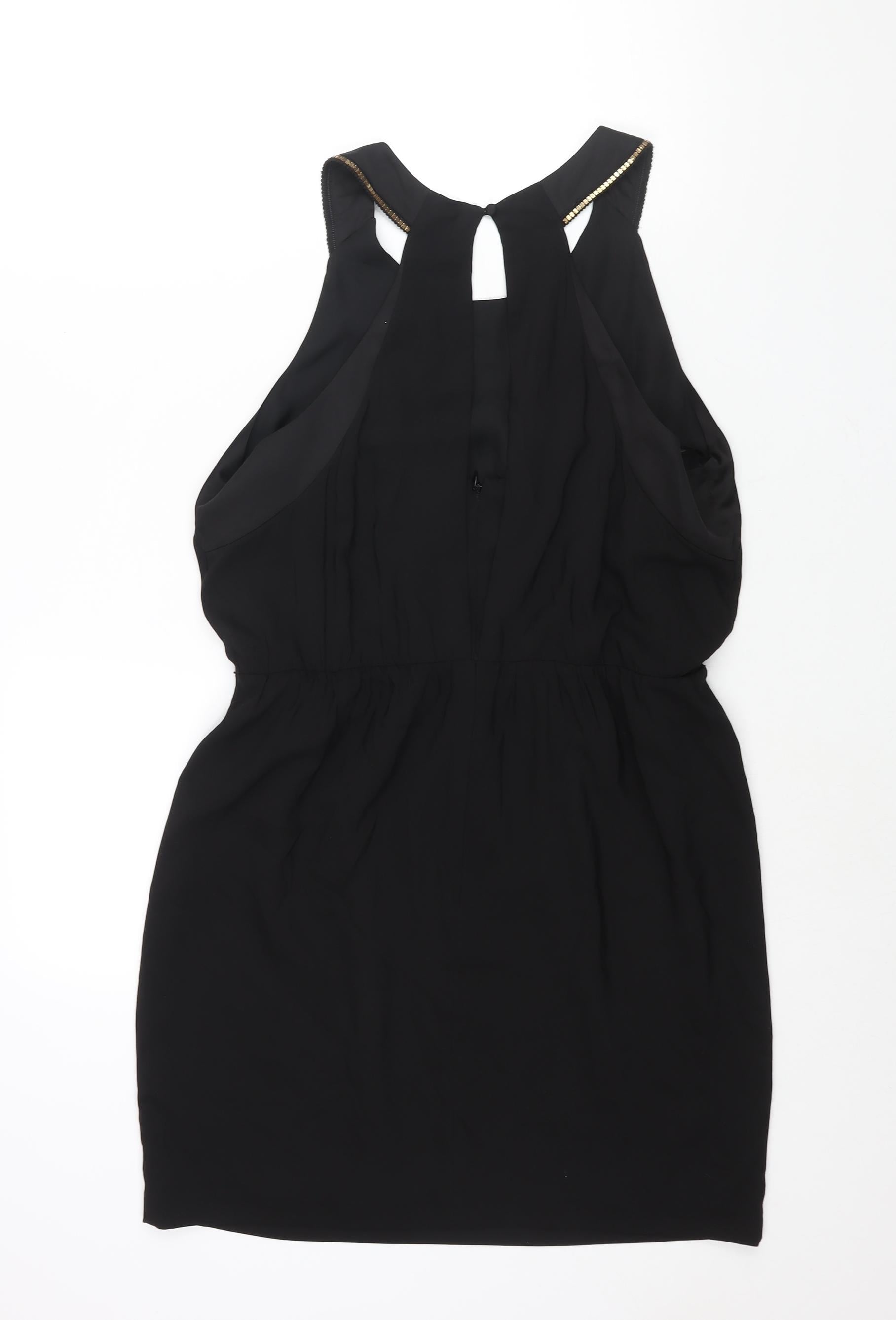 Coast Womens Black Polyester Shift Size 14 Round Neck Zip - Stud Detail