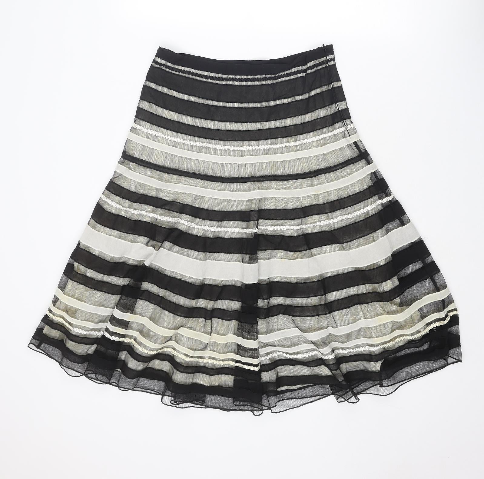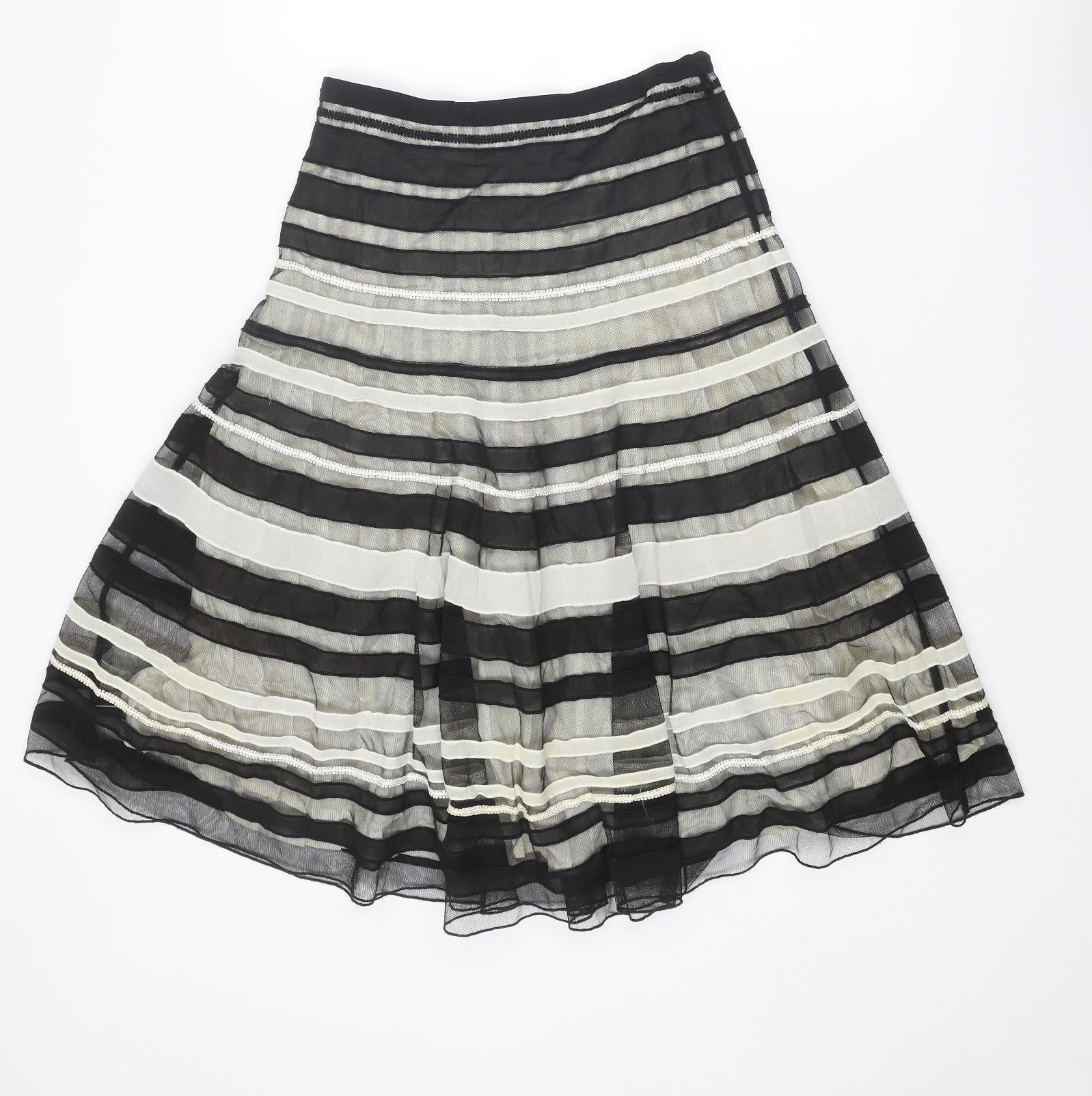 Coast Womens Black Striped Polyester Swing Skirt Size 10 Zip