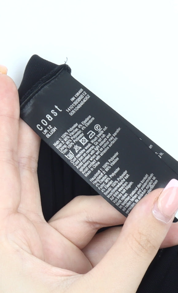 Coast Women's Black Tunic Blouse, Size 12, V-Neck