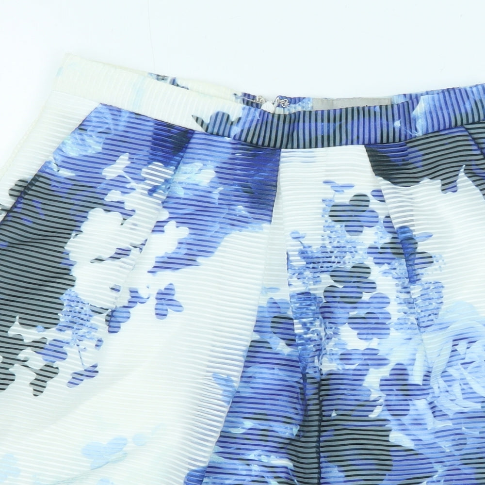 Coast Womens Blue Floral Polyester Swing Skirt Size 6 Zip