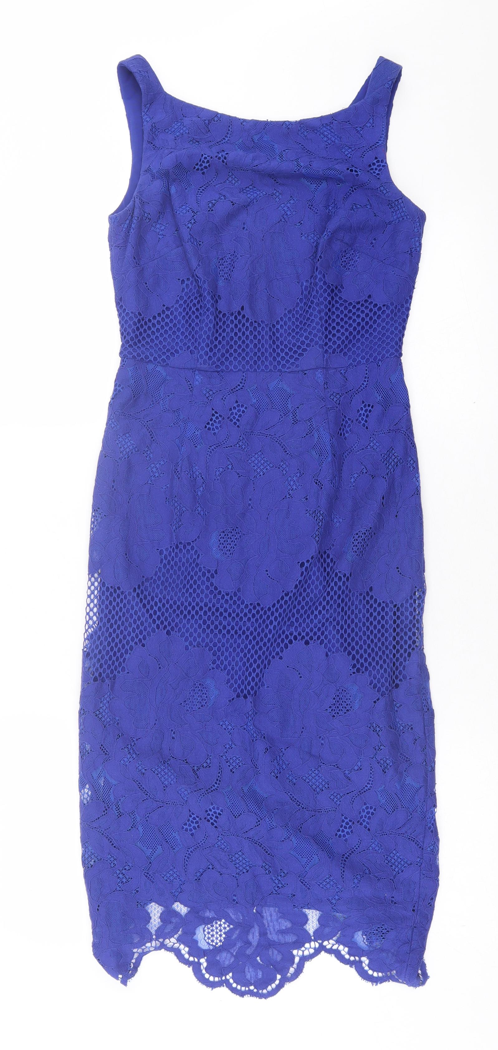 Coast Womens Blue Geometric Cotton A-Line Size 6 Boat Neck Pullover
