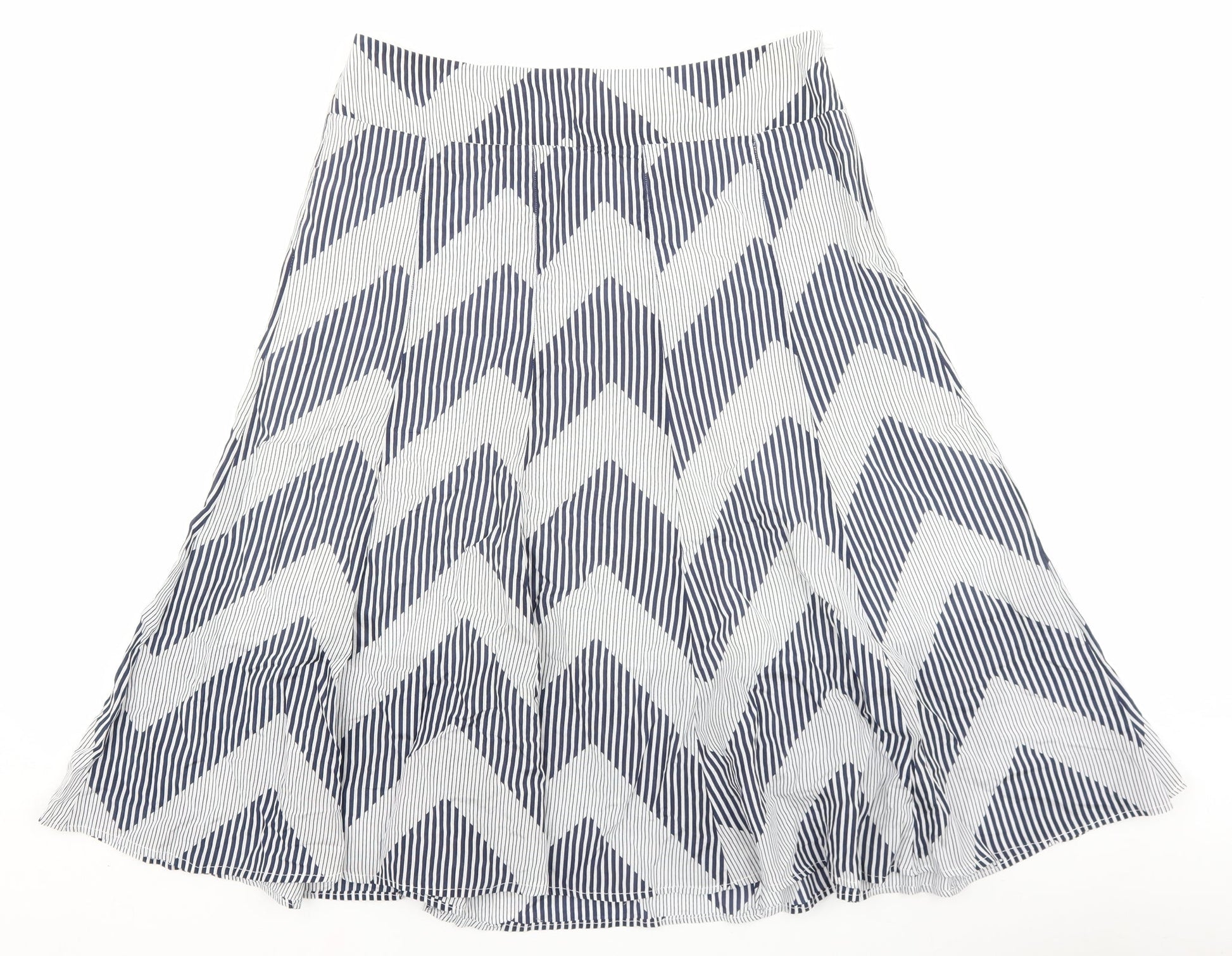 Coast Womens Blue Geometric Cotton A-Line Skirt Size 12 Zip