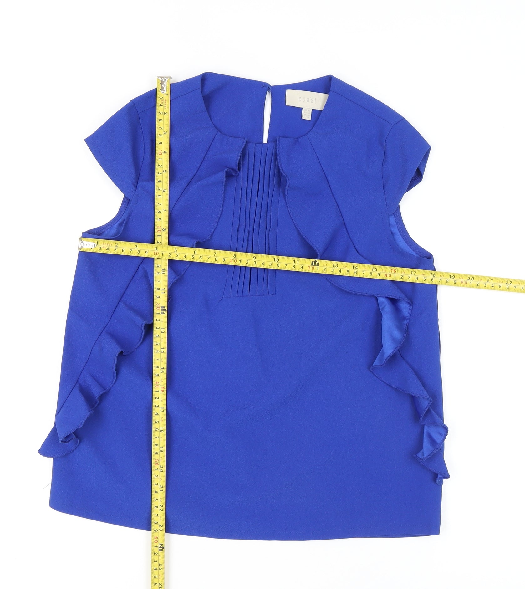 Coast Women's Blue Ruffle Pleat Blouse UK 10 Sleeveless Summer Top