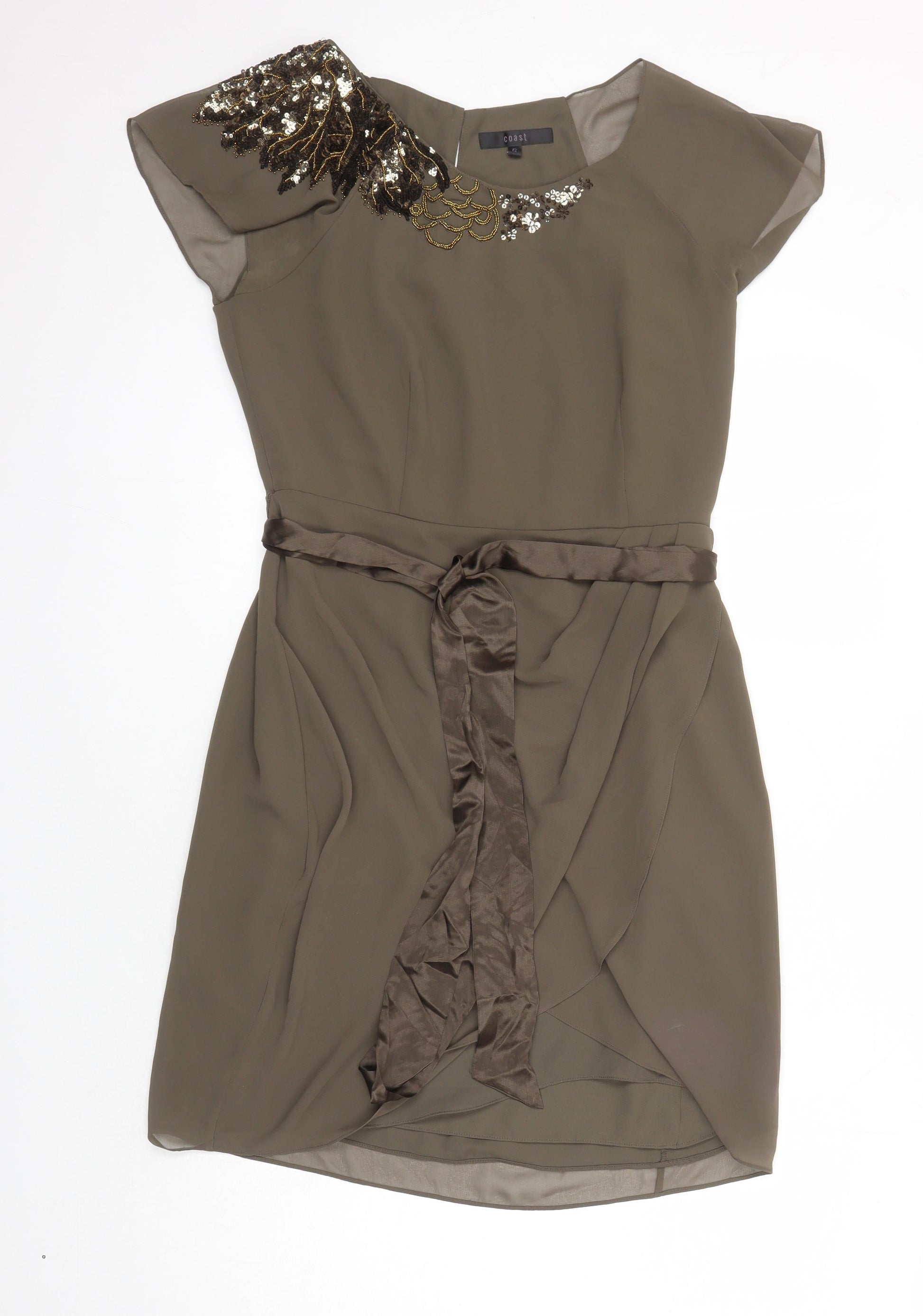 Coast Womens Green Polyester Pencil Dress Size 12 Boat Neck - Sequin Detail