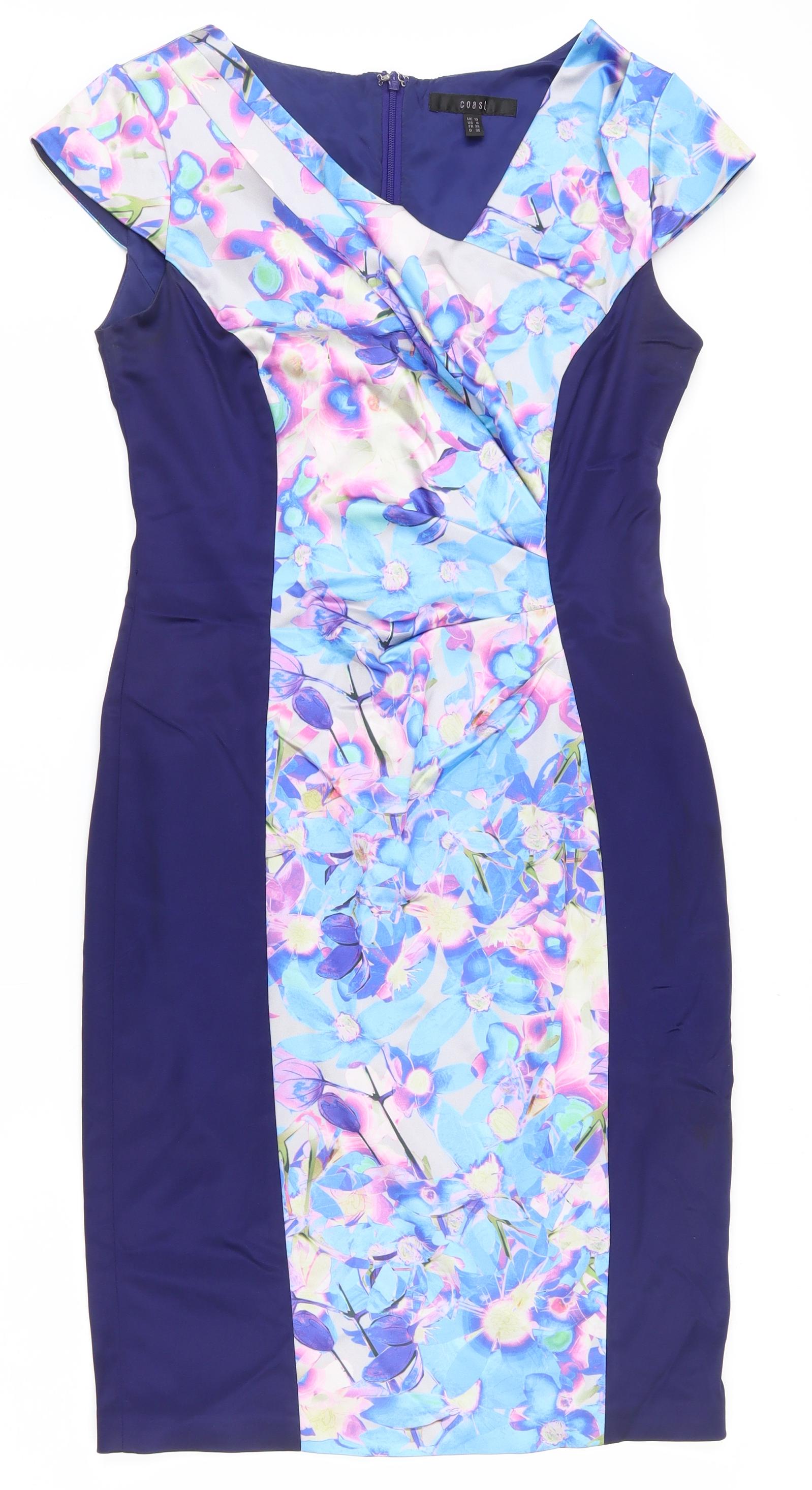 Coast Womens Multicoloured Floral Acetate Bodycon Size 10 V-Neck Zip - Asymmetric neckline