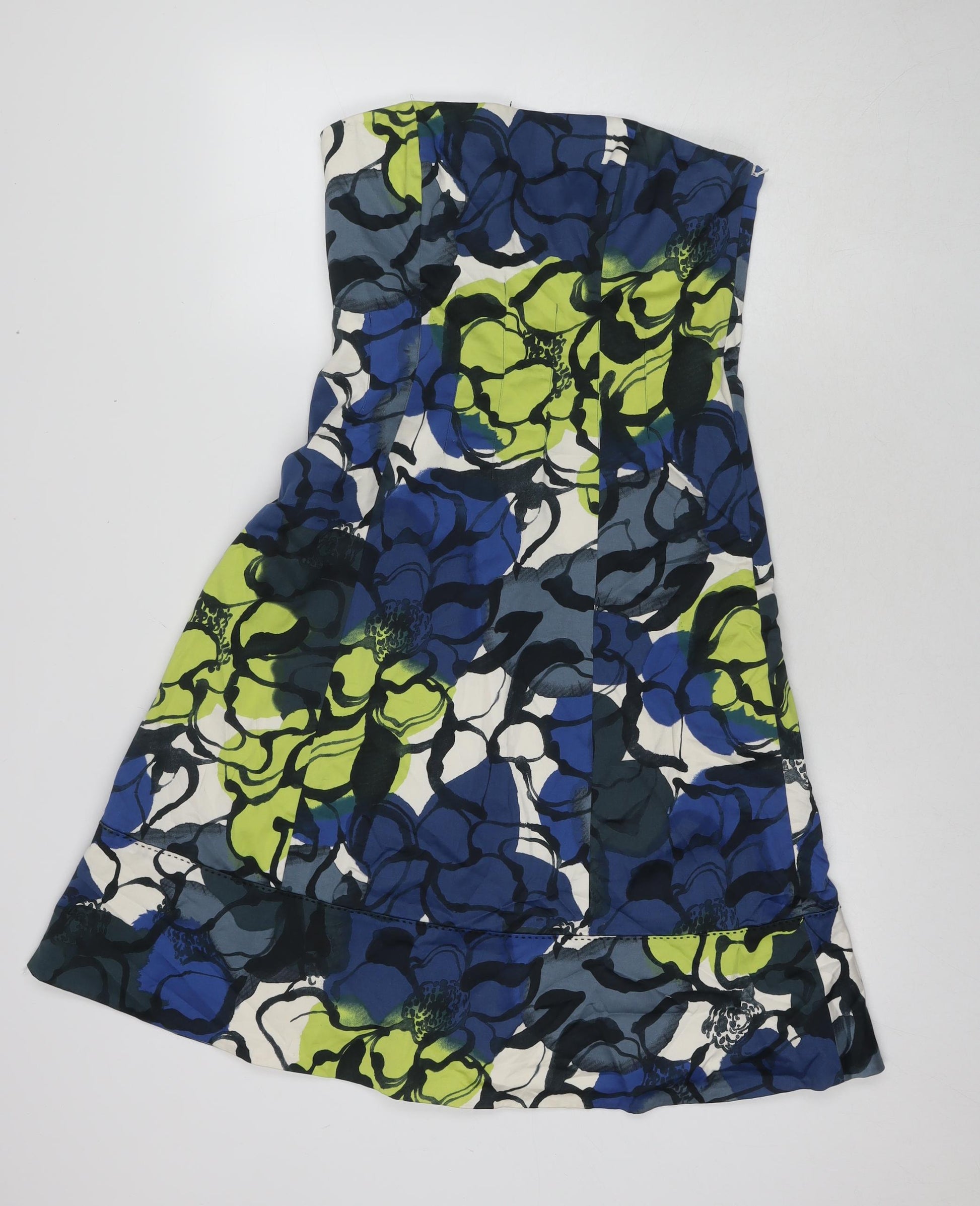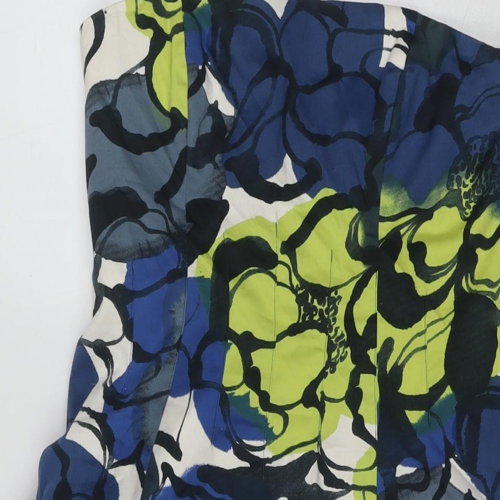 Coast Womens Multicoloured Geometric Cotton A-Line Size 10 Square Neck Pullover - Strapless