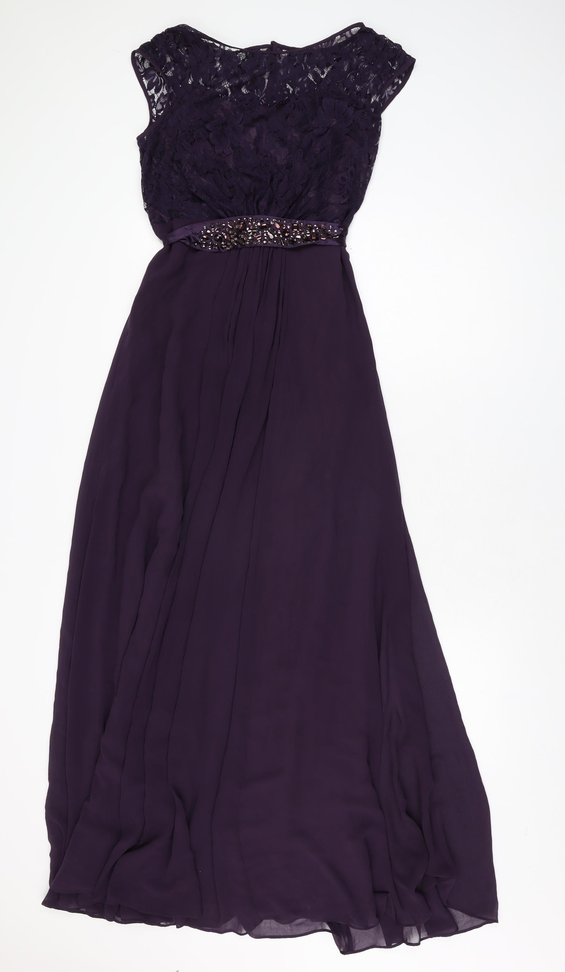 Coast Womens Purple Floral Silk Maxi Size 10 Round Neck Zip