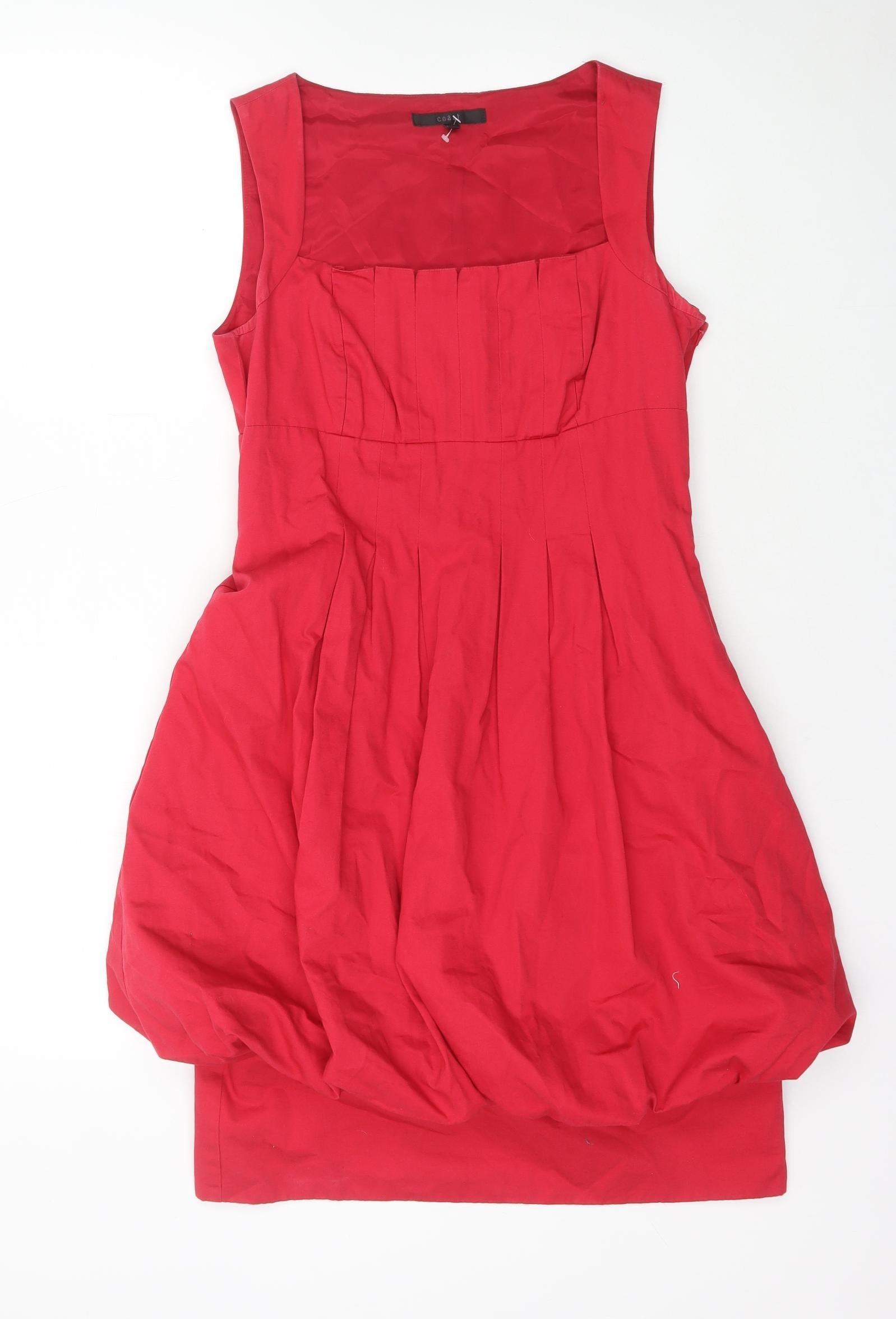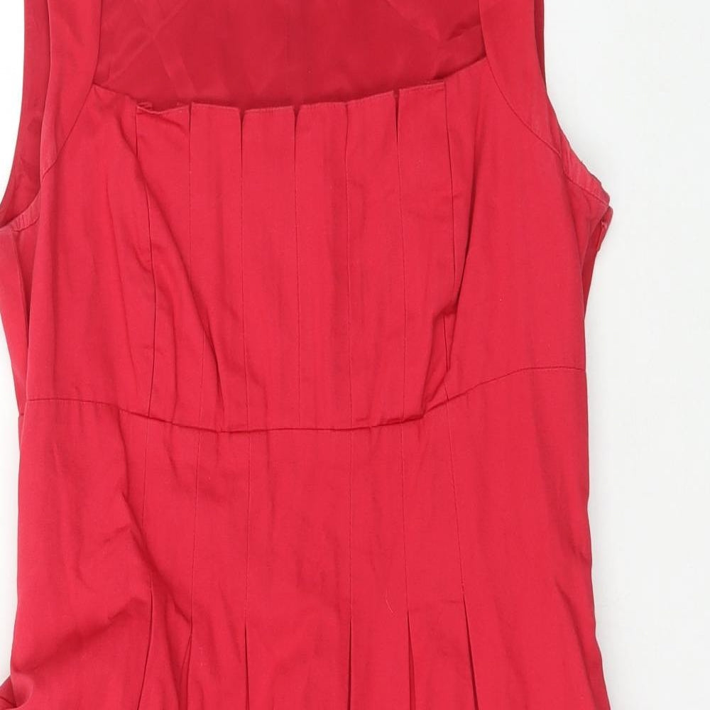Coast Womens Red Cotton A-Line Size 12 Square Neck Zip