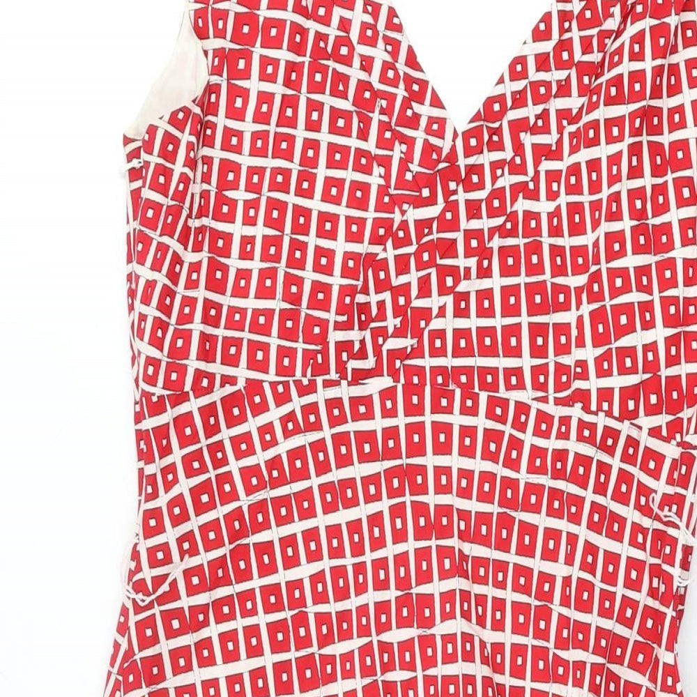 Coast Womens Red Geometric Silk A-Line Size 12 V-Neck Zip