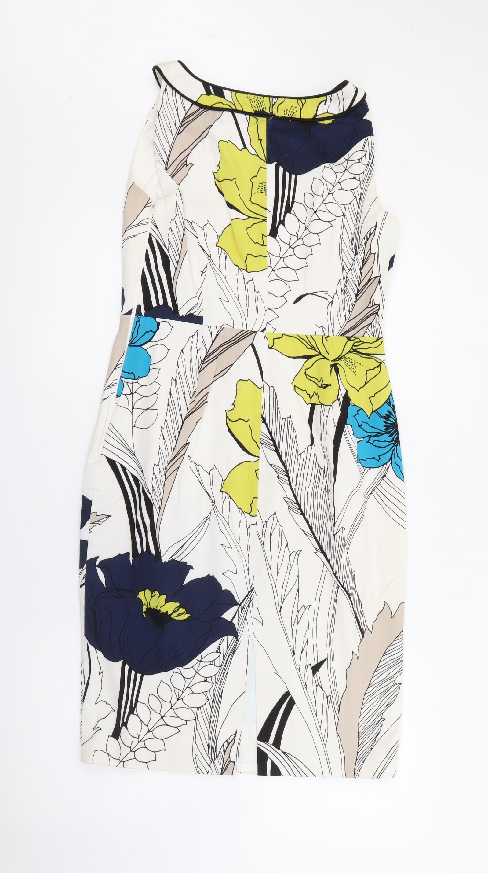 Coast Womens White Floral Cotton Pencil Dress Size 10 Boat Neck Zip