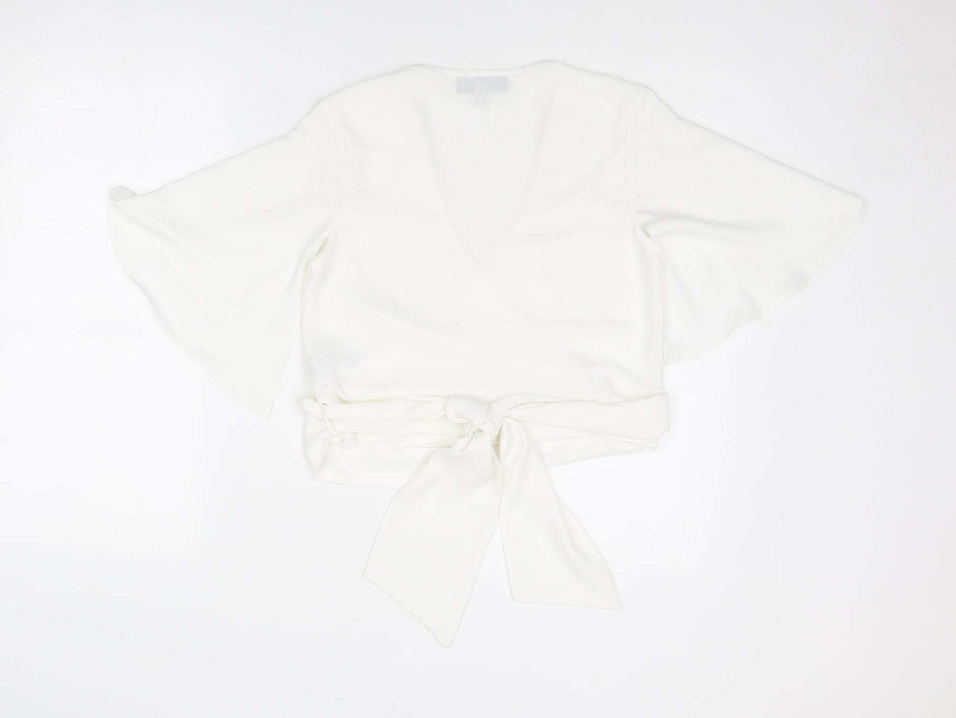 Coast Womens White Polyester Basic Blouse Size 8 V-Neck - Tie Back