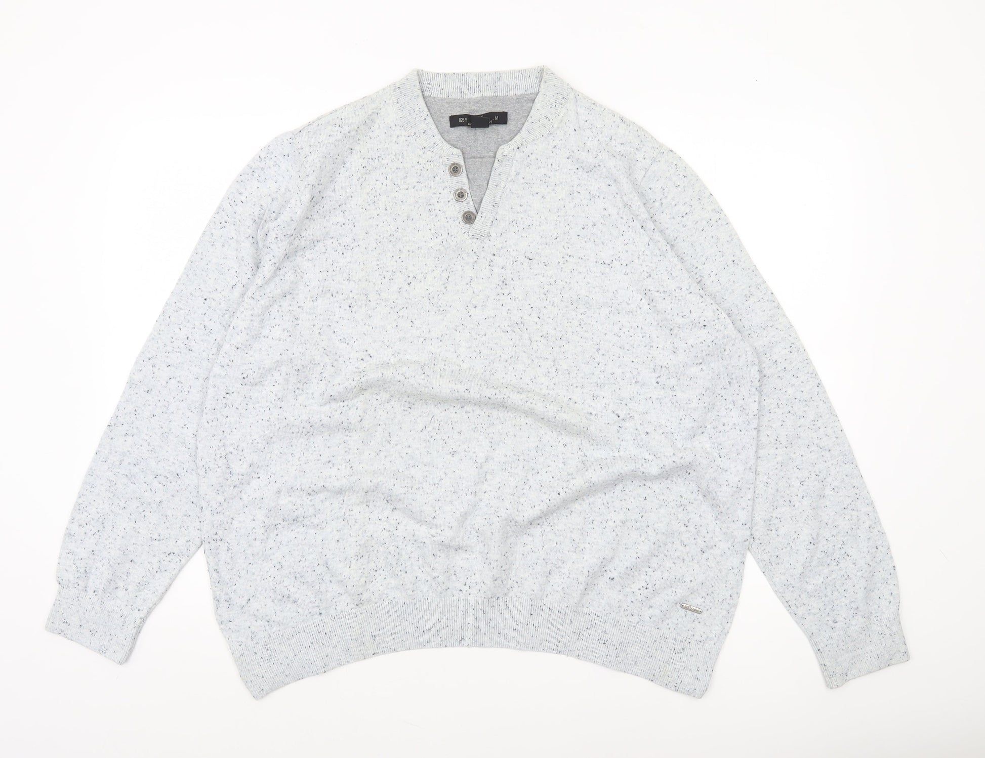 CODE Mens Grey 2XL Henley Knit Jumper Long Sleeve Casual