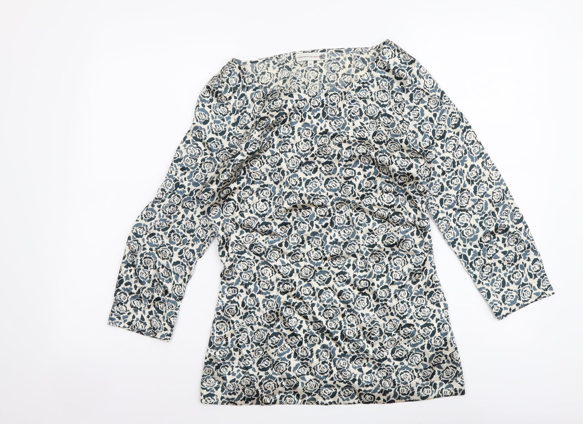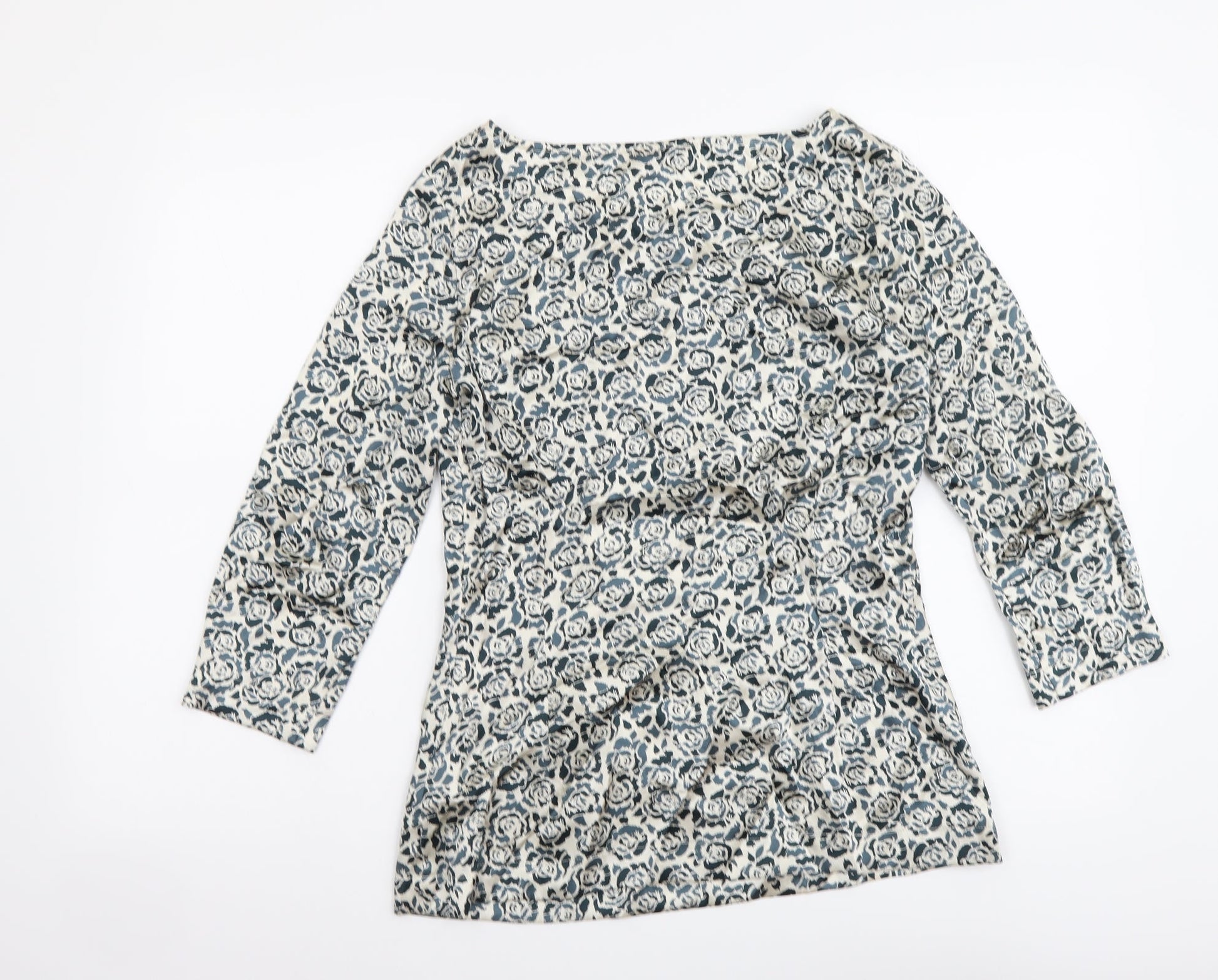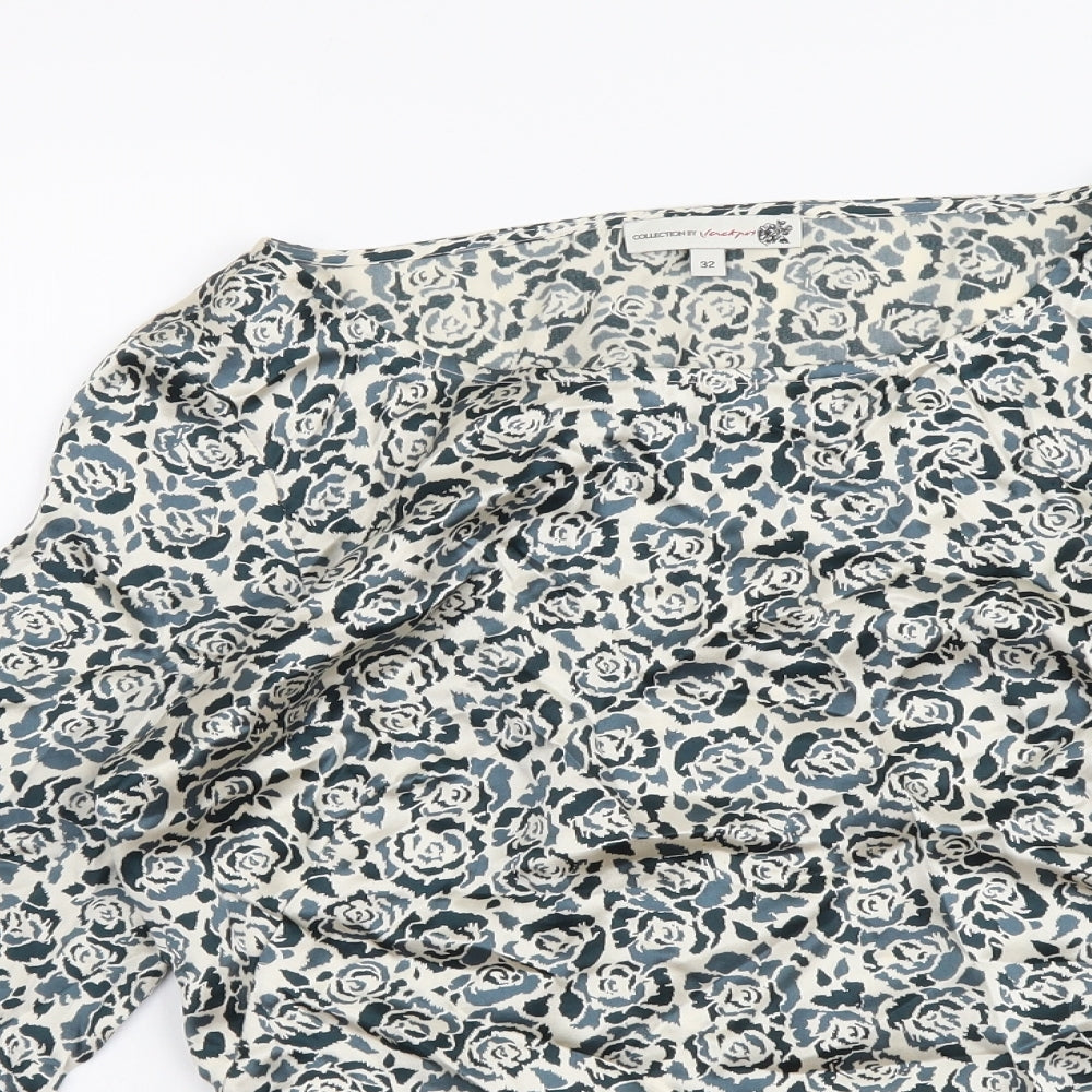 Collection Womens Beige Floral Polyester Basic Blouse Size XS Boat Neck