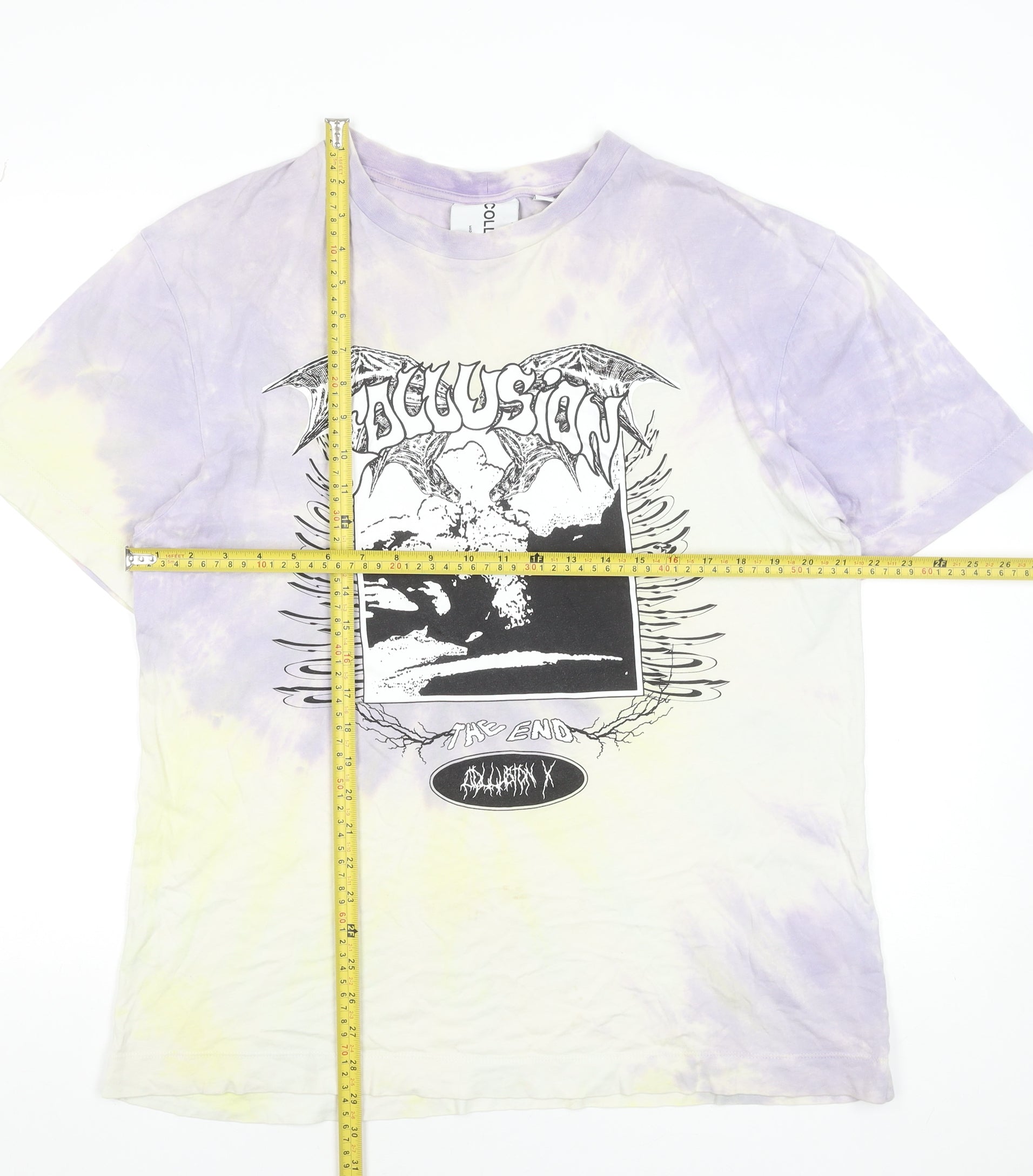 Collusion Men's Multicoloured Graphic Tie-Dye T-Shirt M Cotton
