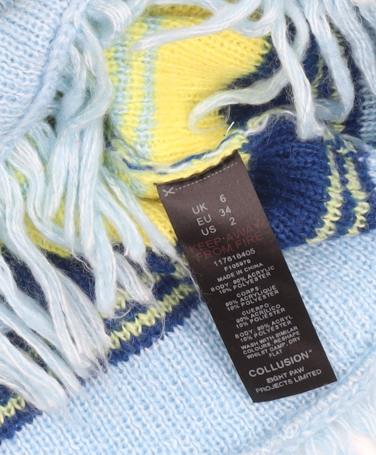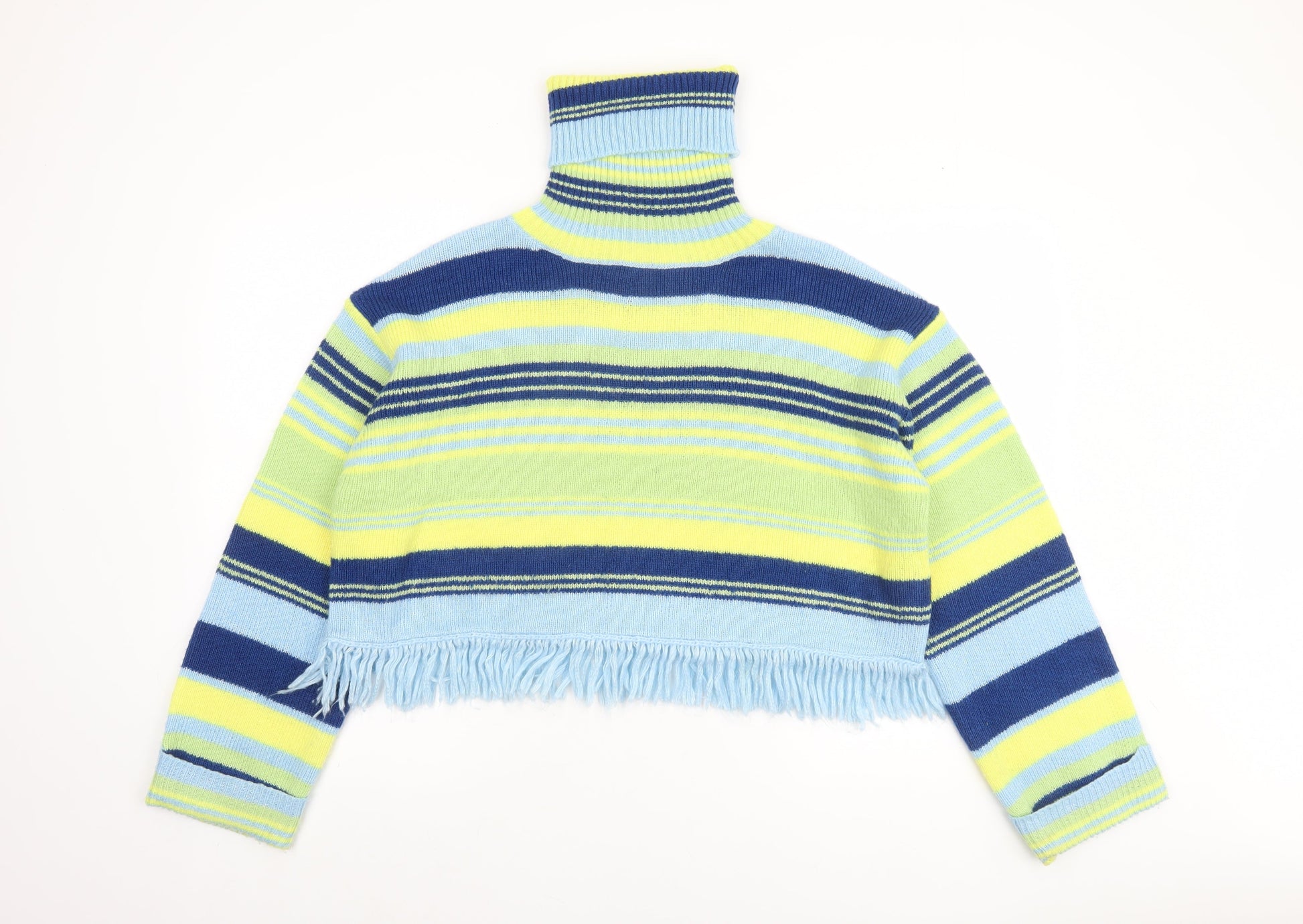 Collusion Women Blue Green Striped Roll Neck Cropped Jumper UK 6