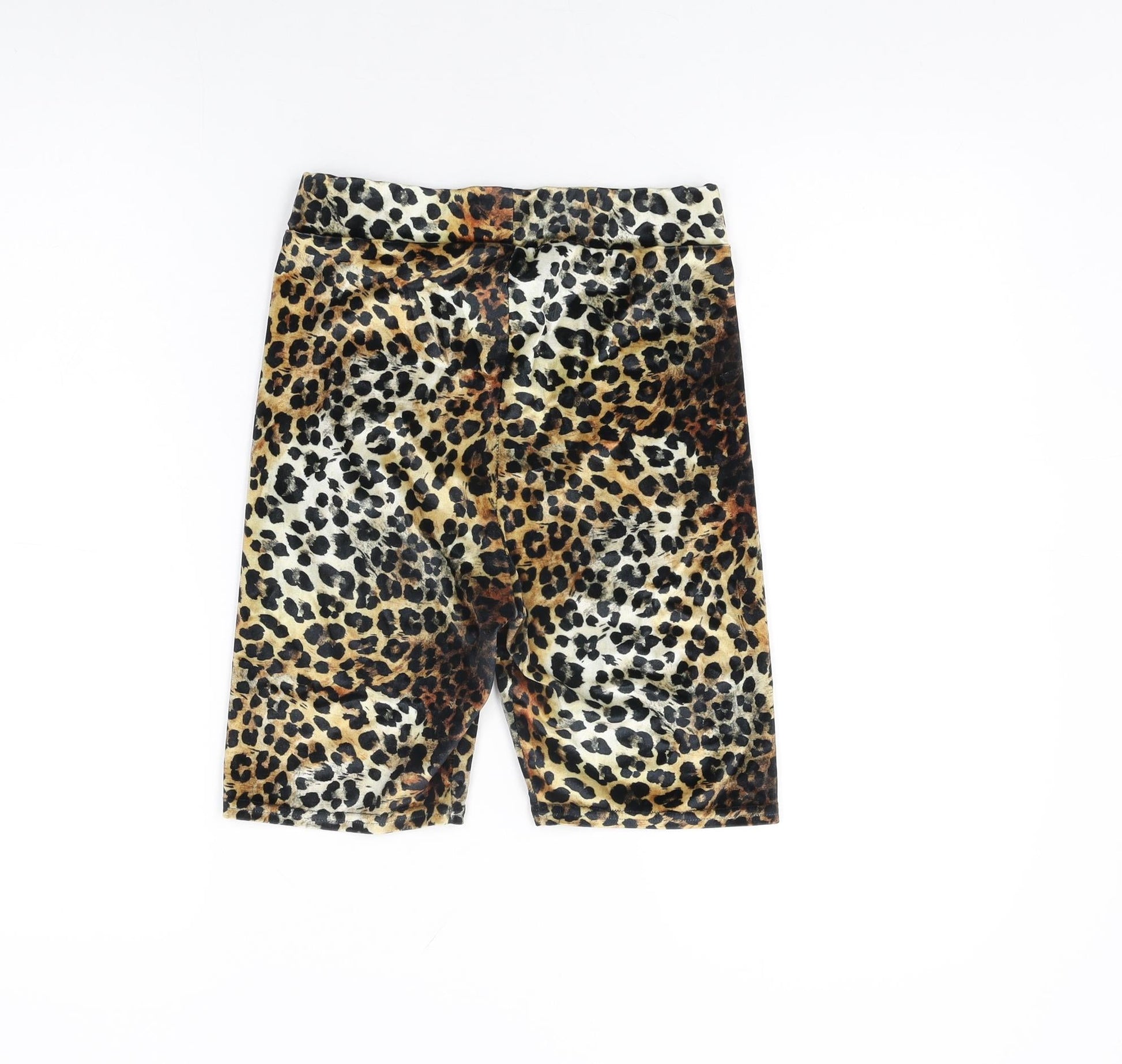 COLLUSION Womens Beige Animal Print Polyester Biker Shorts Size 8 L7.5 in Regular Pull On