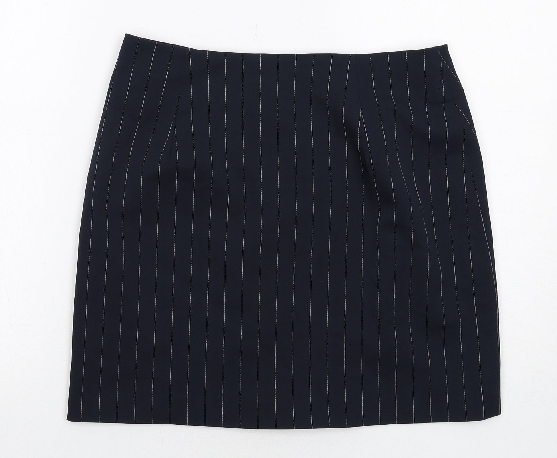 COLLUSION Womens Blue Striped Polyester A-Line Skirt Size 12 Button
