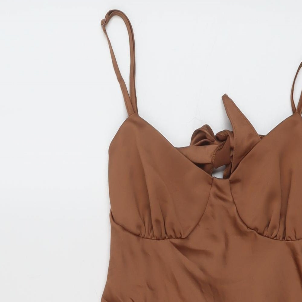 COLLUSION Womens Brown Polyester Mini Size 10 Sweetheart Tie