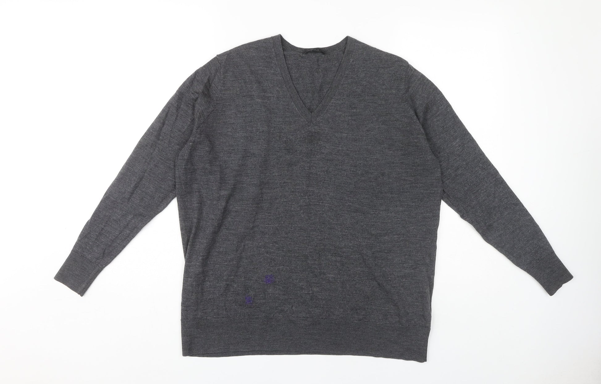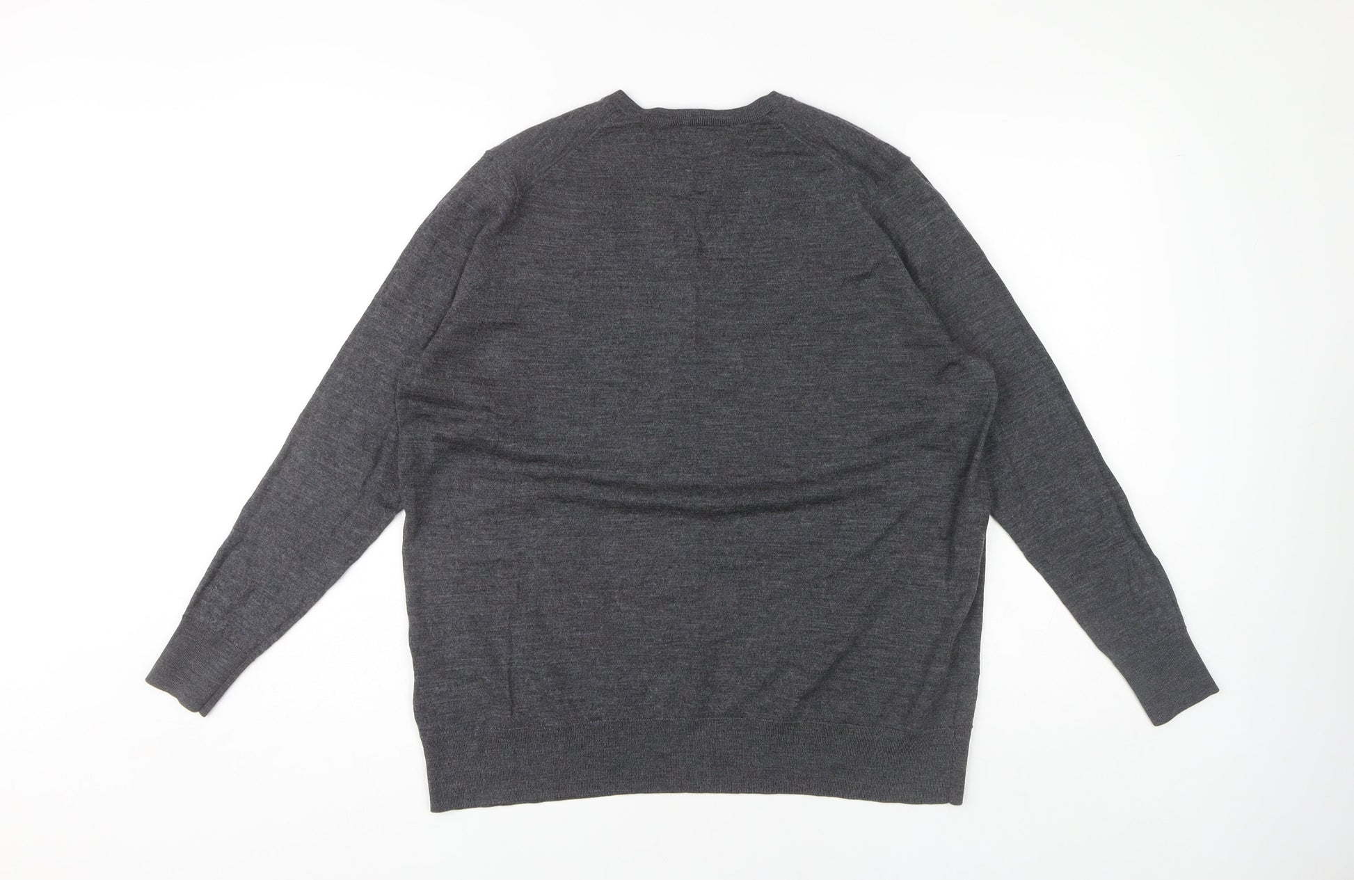 COS Men’s Grey Wool V-Neck Pullover Jumper, Medium
