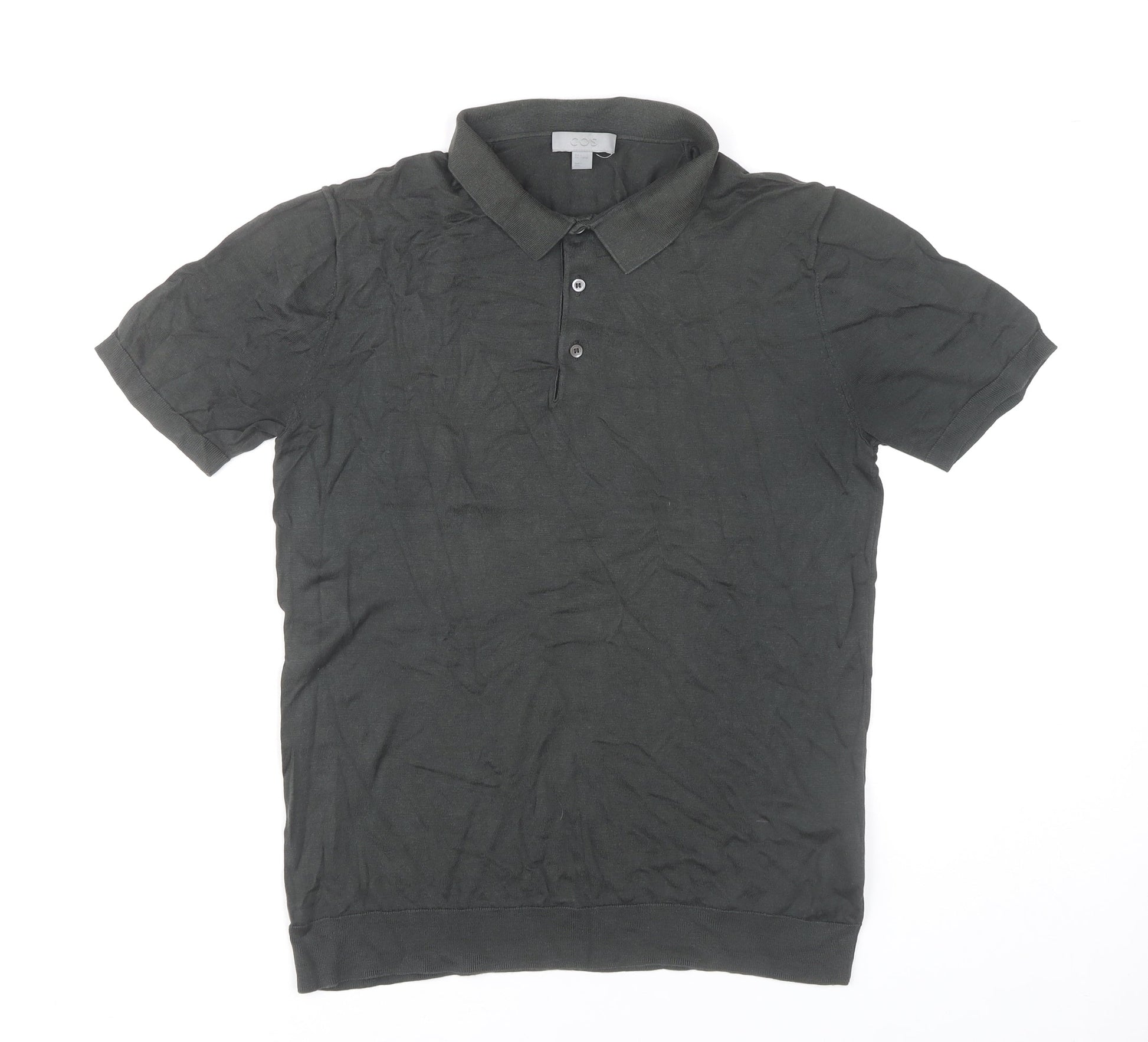 COS Men's Black Silk Cotton Short Sleeve Polo Shirt M Regular Fit