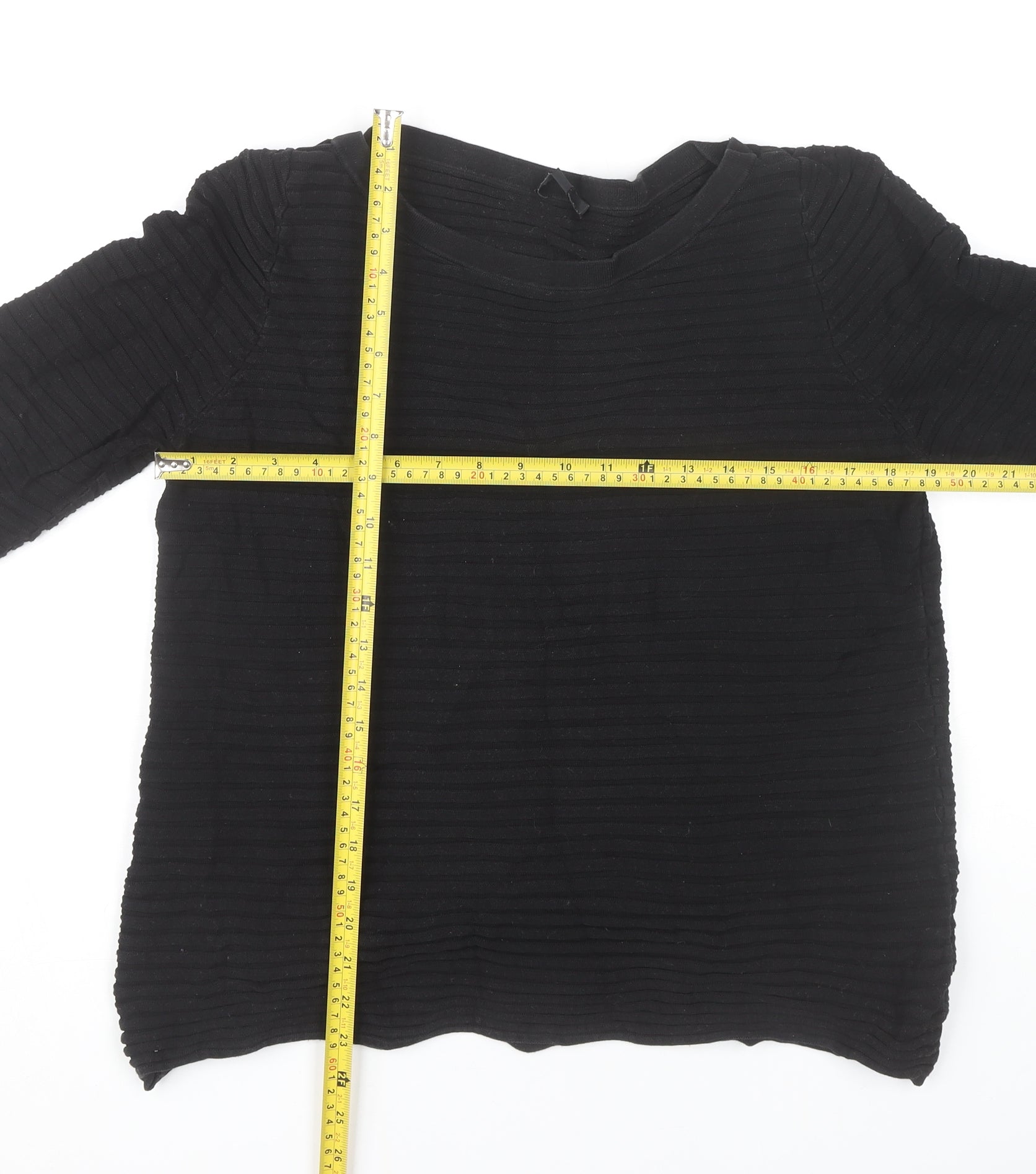 COS Womens Black Cotton Pullover Jumper Size 12 Round Neck 3/4 Sleeve