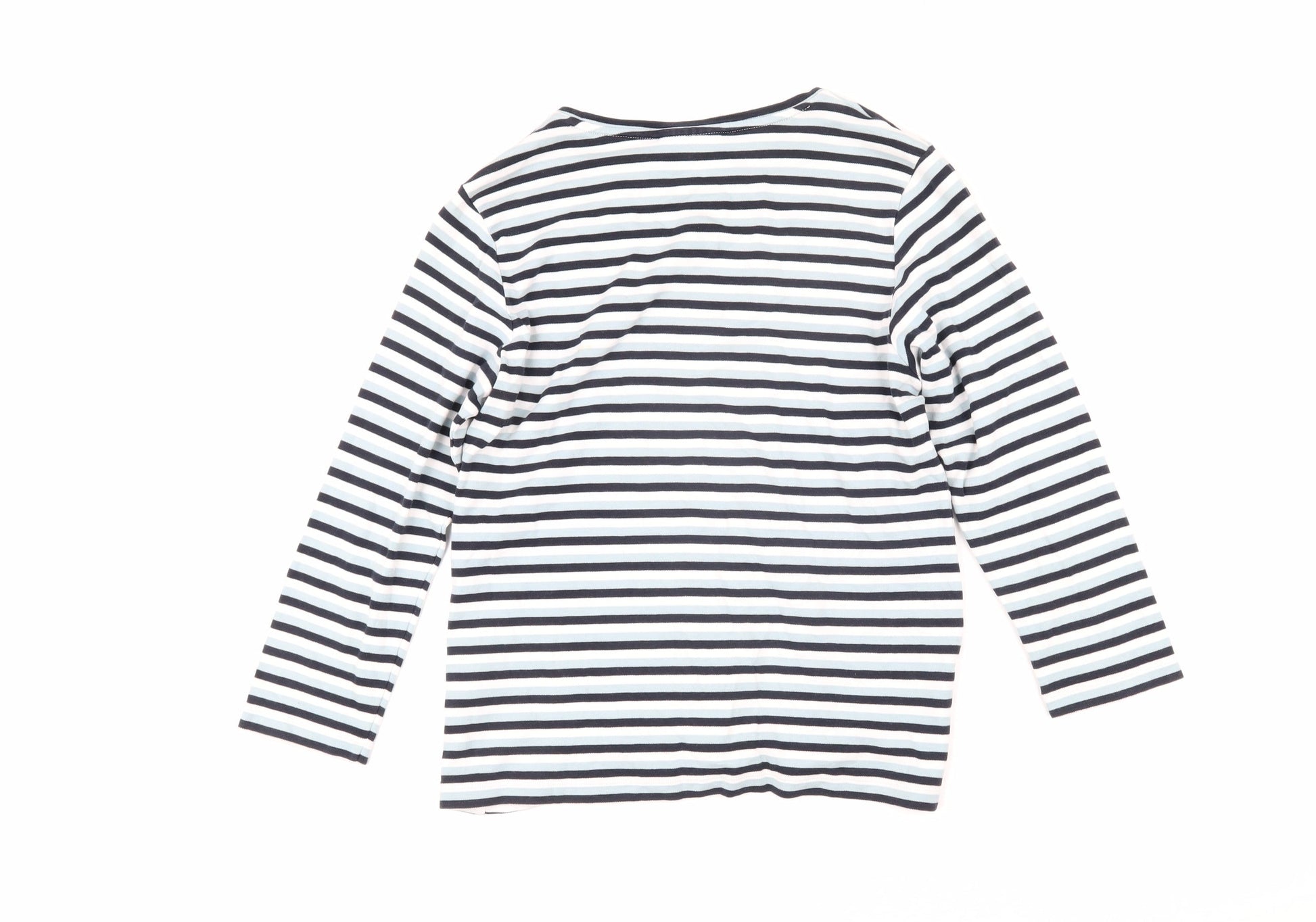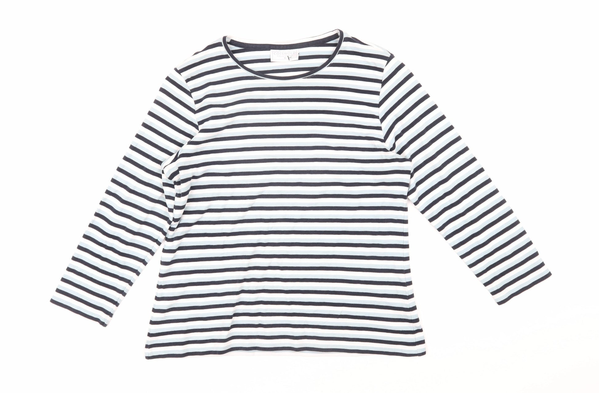 Cotswold Collections Womens Blue Striped Cotton Basic T-Shirt Size M Round Neck