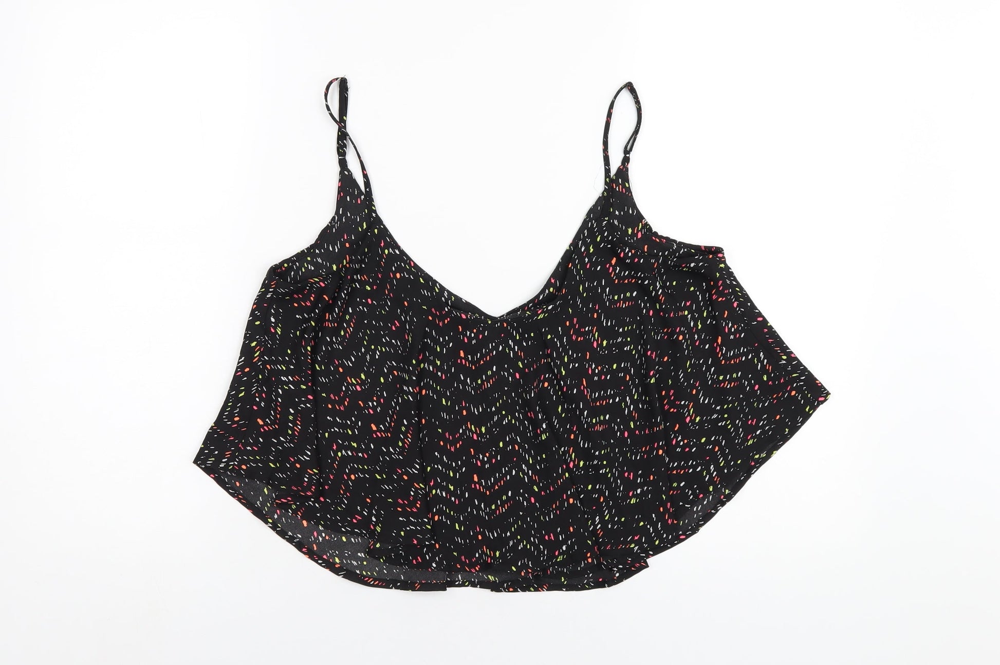 Cotton On Womens Black Geometric Polyester Camisole T-Shirt Size S Scoop Neck
