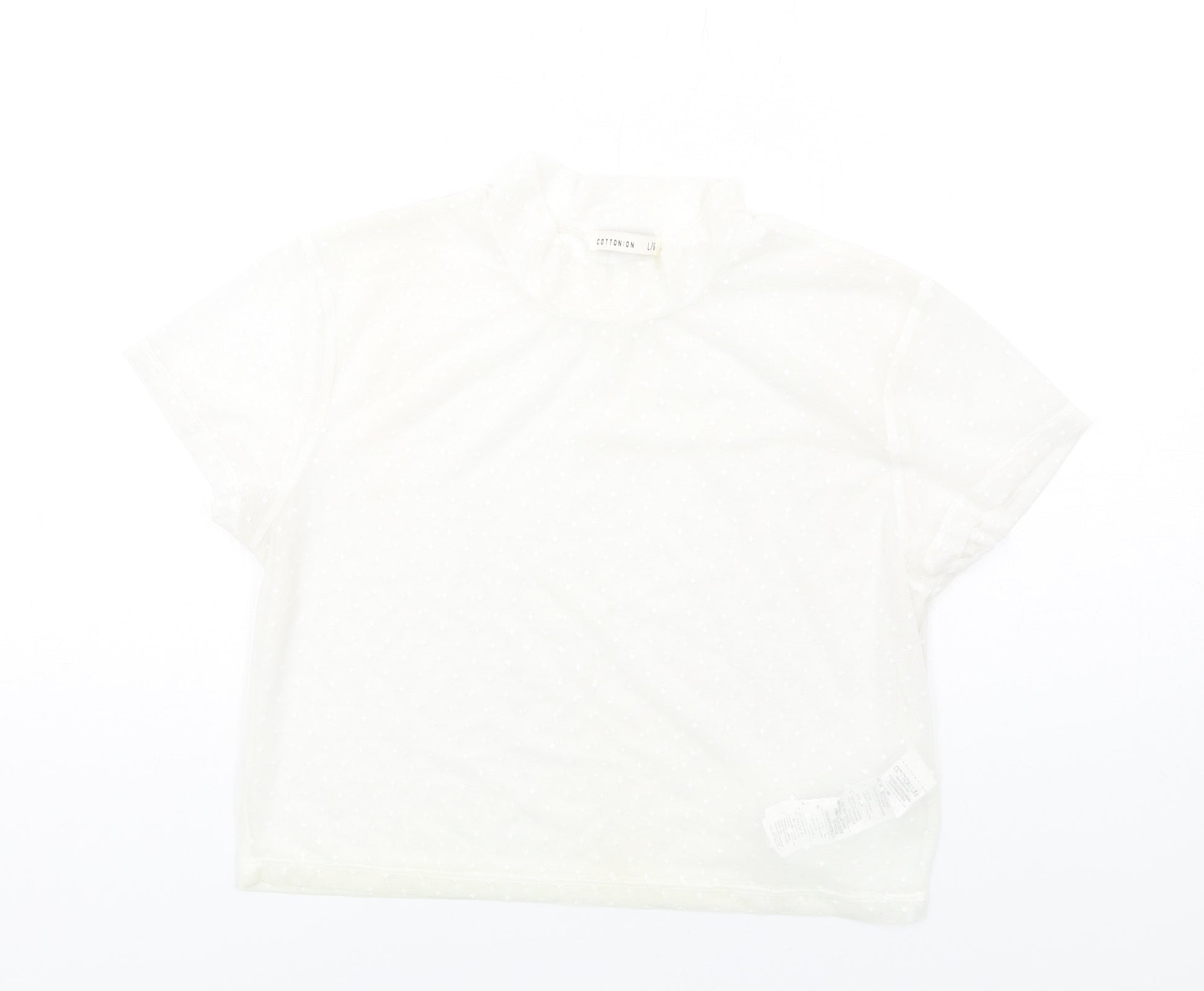 Cotton On Womens Ivory Polyester Cropped T-Shirt Size L Mock Neck