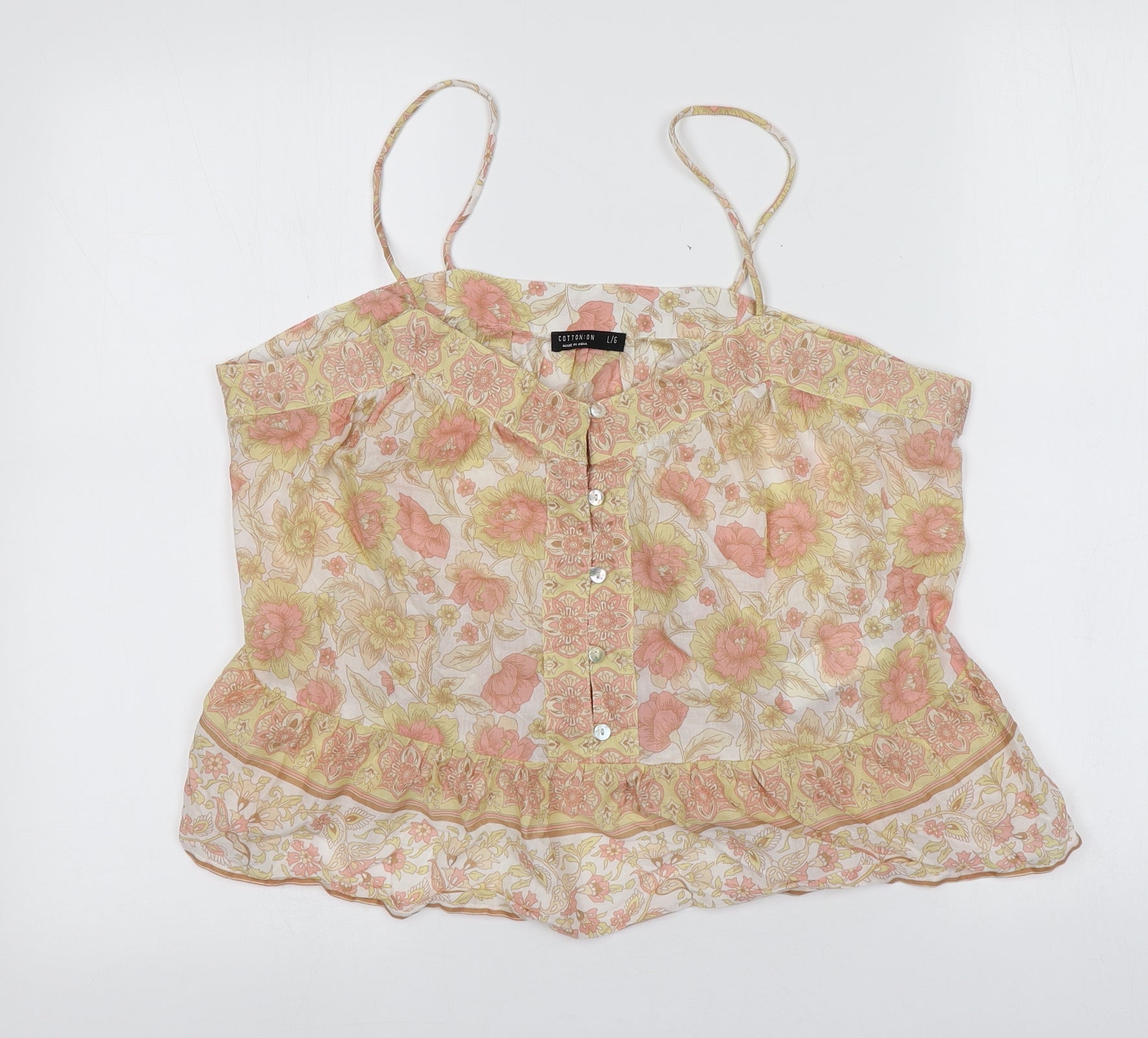 Cotton On Womens Multicoloured Floral 100% Cotton Basic T-Shirt Size 6 Square Neck