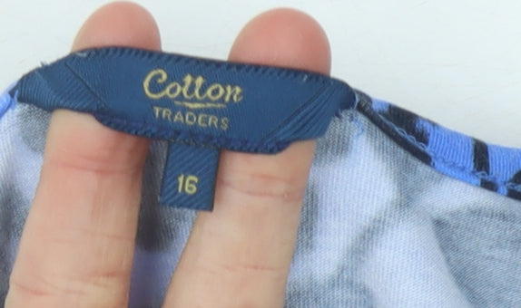 Cotton Traders Blue Floral Dress 3/4 Sleeve Size 16