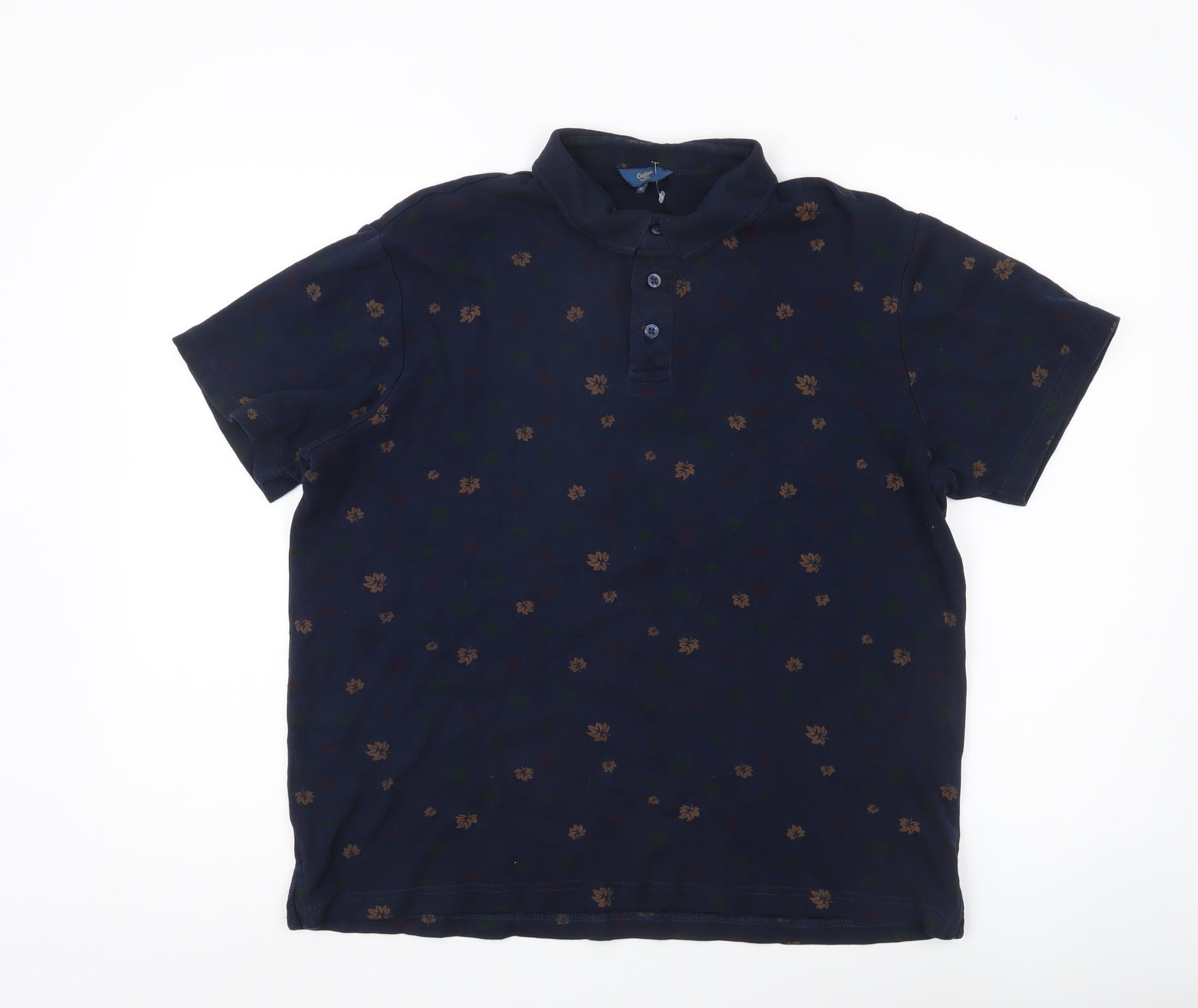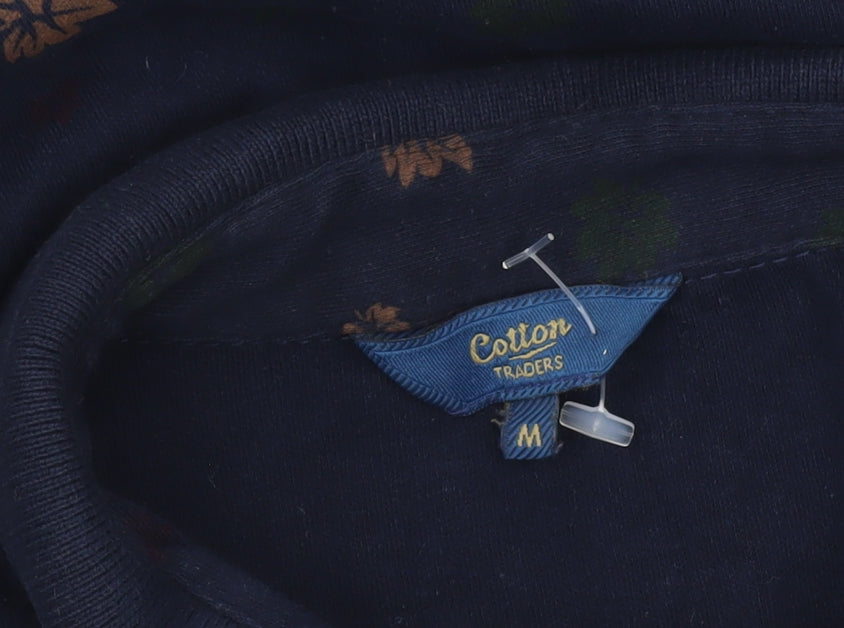 Cotton Traders Men’s Blue Floral Polo Shirt Size M Short Sleeve