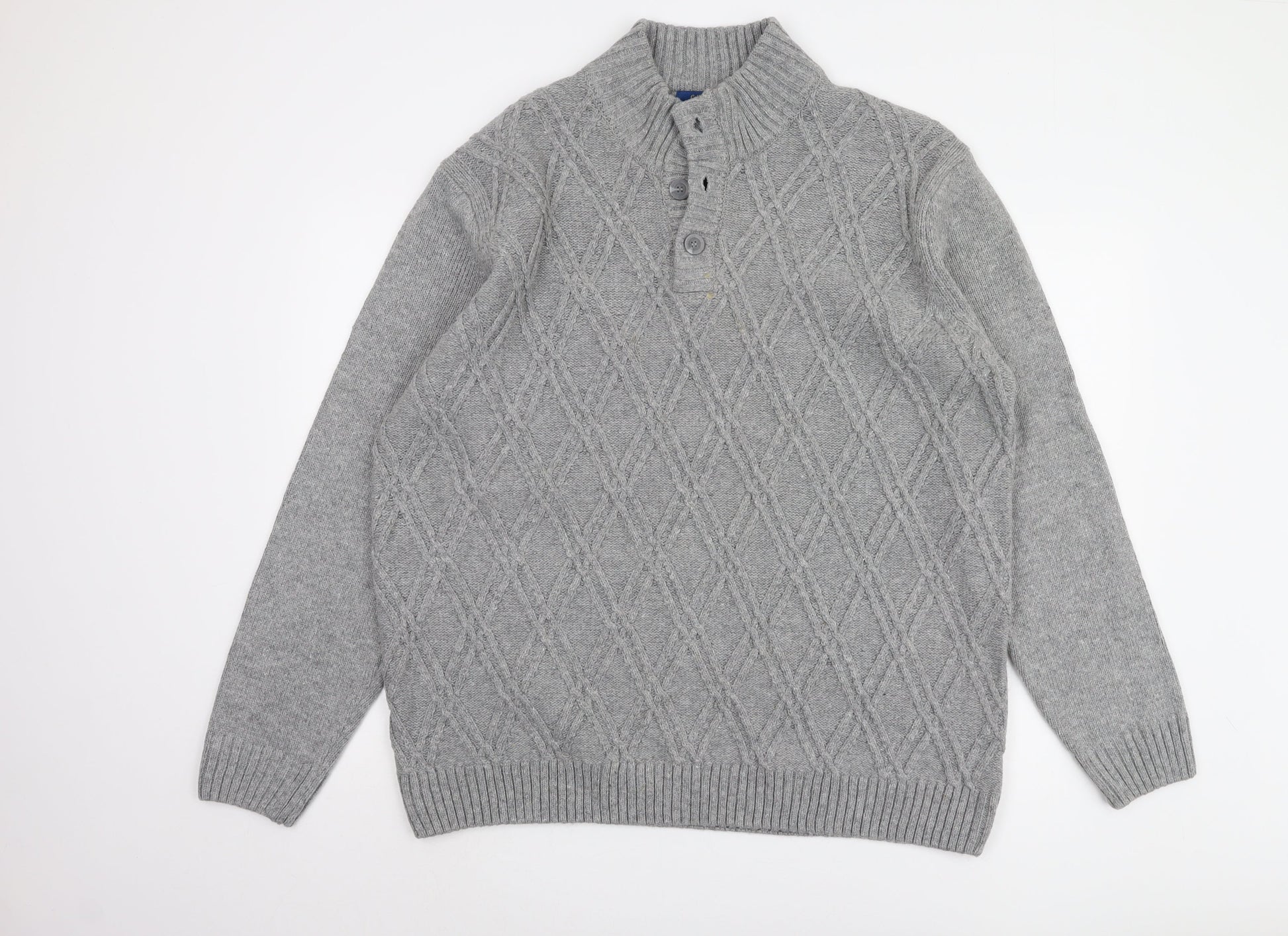 Cotton Traders Men’s Grey 2XL Henley Jumper