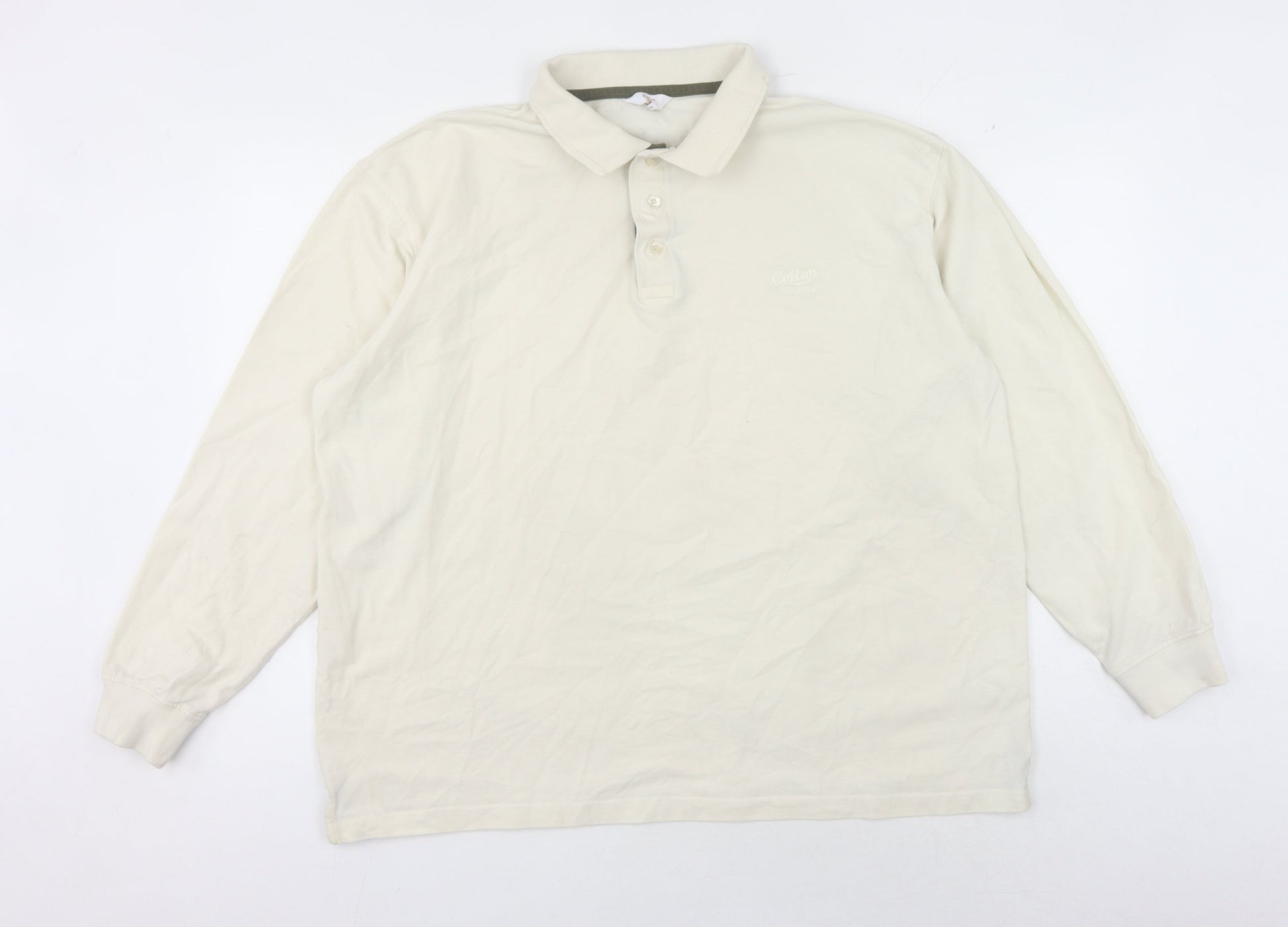 Cotton Traders Men's Beige Long Sleeve Polo 2XL