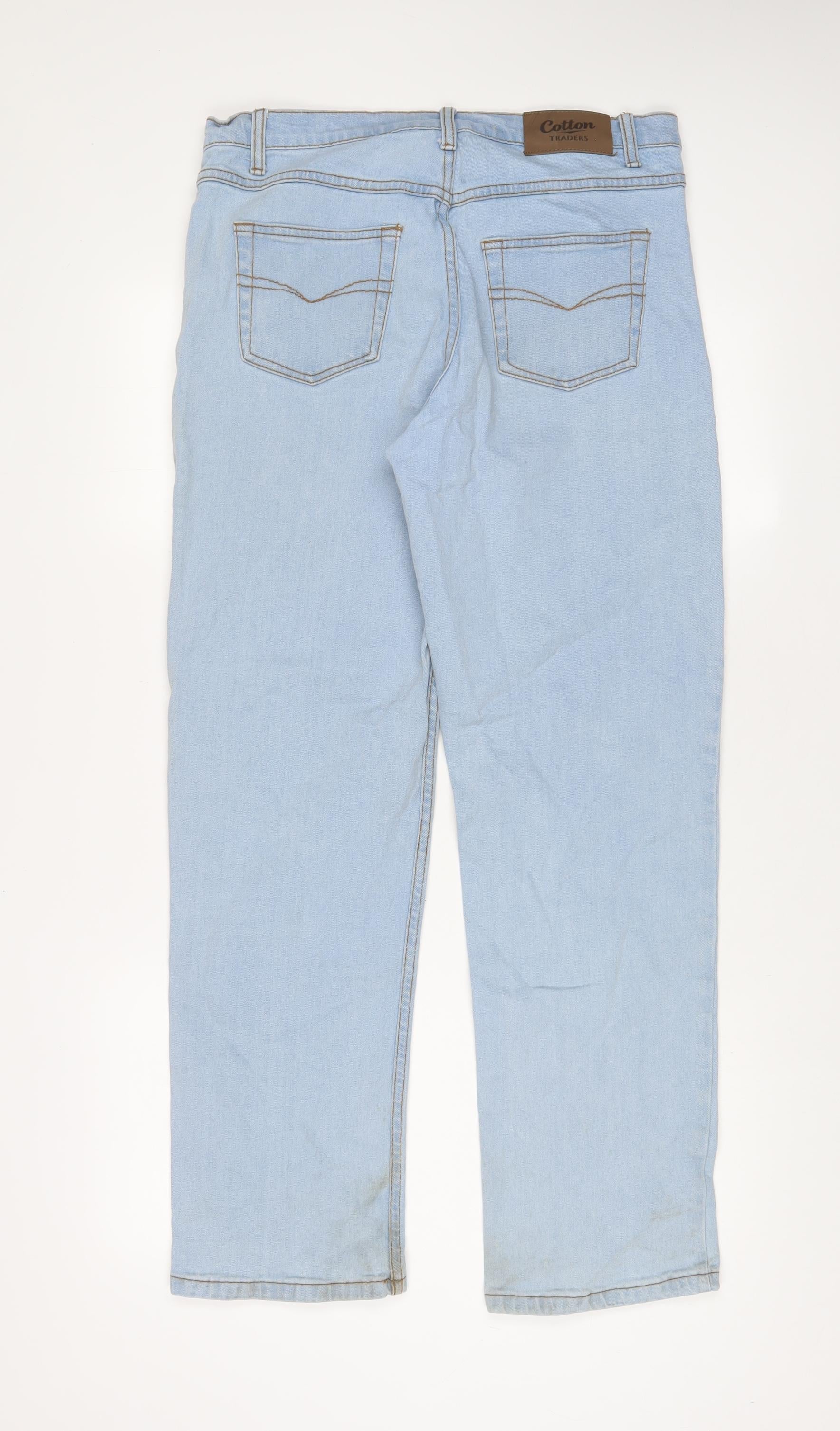 Cotton Traders Mens Blue Cotton Straight Jeans Size 32 in L30 in Regular Zip