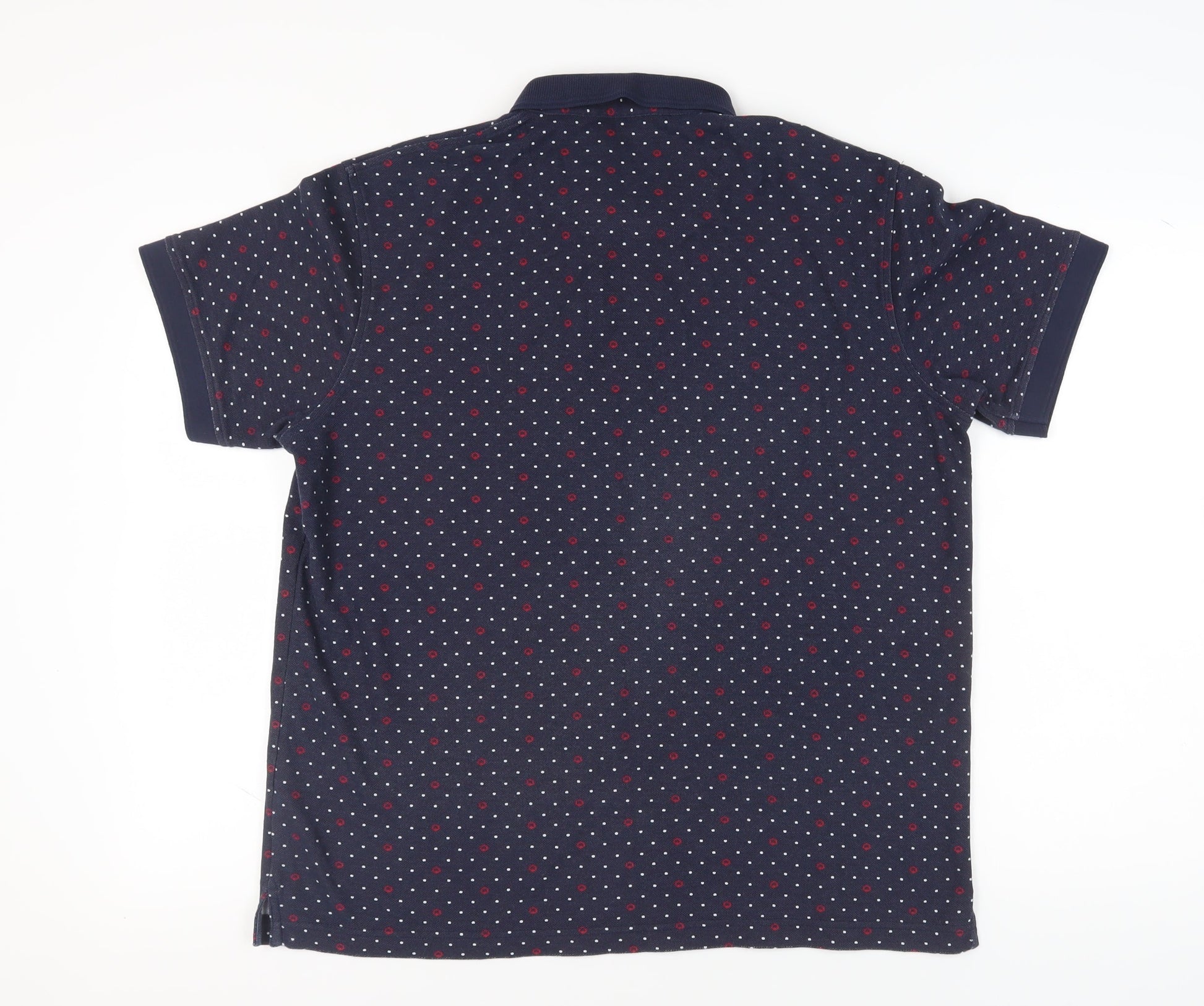 Cotton Traders Men's Blue Polka Dot Polo Shirt - Size L