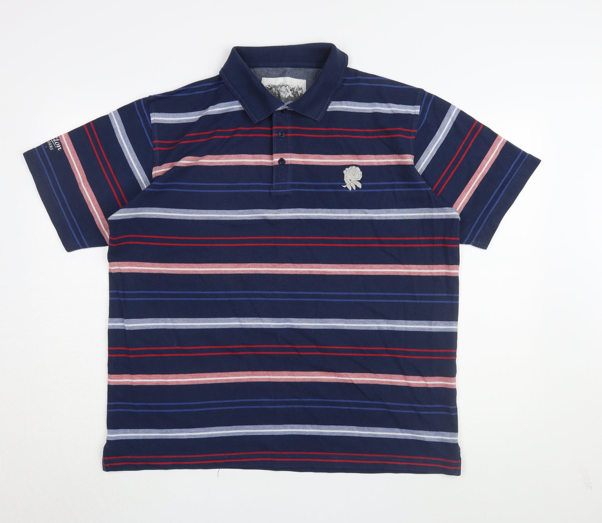 Cotton Traders Men's Blue Striped Polo Shirt L